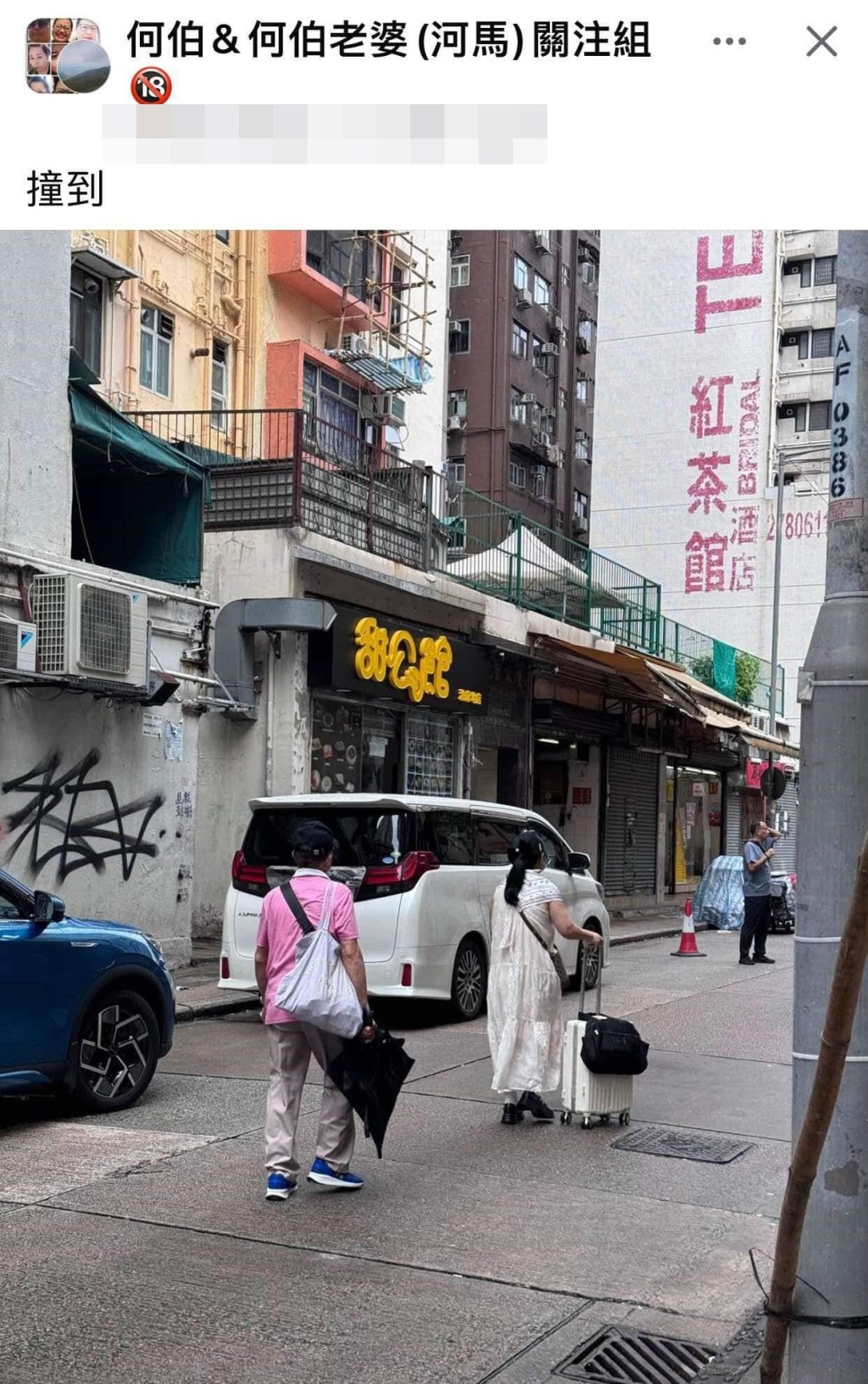 網台「無糧軍師Water」12日報道,指何伯夫婦現身天水圍某酒店,並在警察陪同下拖篋離開,從閉路電視畫面看到,兩人於警察陪同下返回何太的公屋大樓內。同日晚上,何太在另一間酒店開直播,指她與何伯原本住在天水圍某酒店,卻遭「黑粉」投訴,而被酒店趕走。