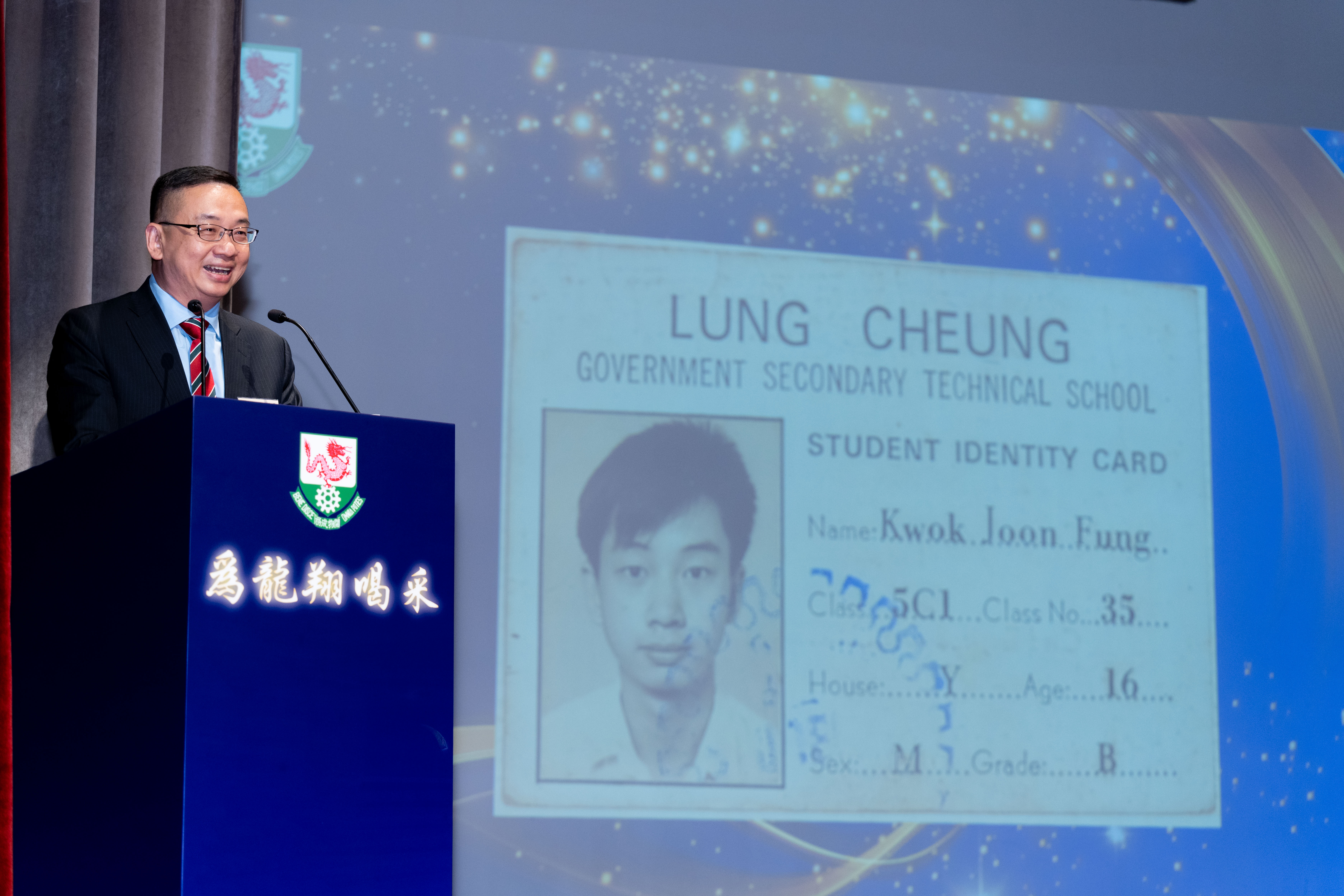 郭俊峯指出,即使畢業多年,在現時面對職場的挑戰上,「人人有潛能,個個可成功」的教學理念一直鼓勵他前進,勉勵台下畢業生銘記師長教導。最後,以歌曲《喝采》「似朝陽正初升,你要自信有光明前路」寄語在座各位要自強不息,當能闖出一片新天地。