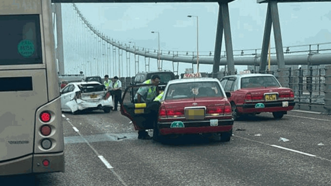 (有片)青馬大橋兩車相撞 至少6人受傷