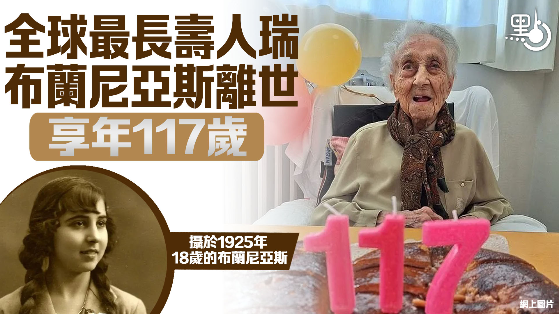 歷經兩次世界大戰,戰勝新冠肺炎,獲健力士世界紀錄認證的全球最長壽老人,居於西班牙加泰羅尼亞的女子布蘭尼亞斯,日前在睡夢中安詳辭世,享年117歲。
