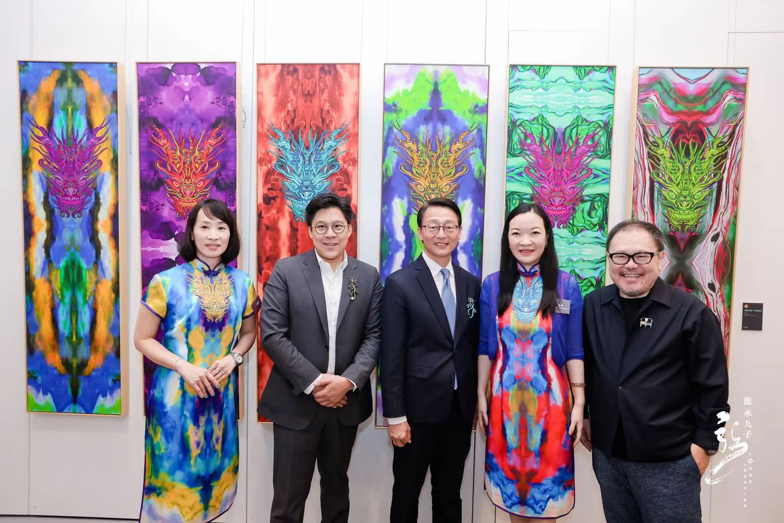 藝術家余嫿的《睚眥可佳,人皆為龍》亦是參展的作品之一。作品以龍的九子之一「睚眥」為靈感,結合現代藝術手法重新演繹。睚眥以剛烈堅毅著稱,作品傳達「望子成龍」理念,強調每個人的獨特性和潛力。六色龍頭與彩墨山水背景象徵廣闊天地,寓意人人皆可成龍。作品採用電腦手繪技術,印於100%真絲,突顯龍文化的貴重與傳承。