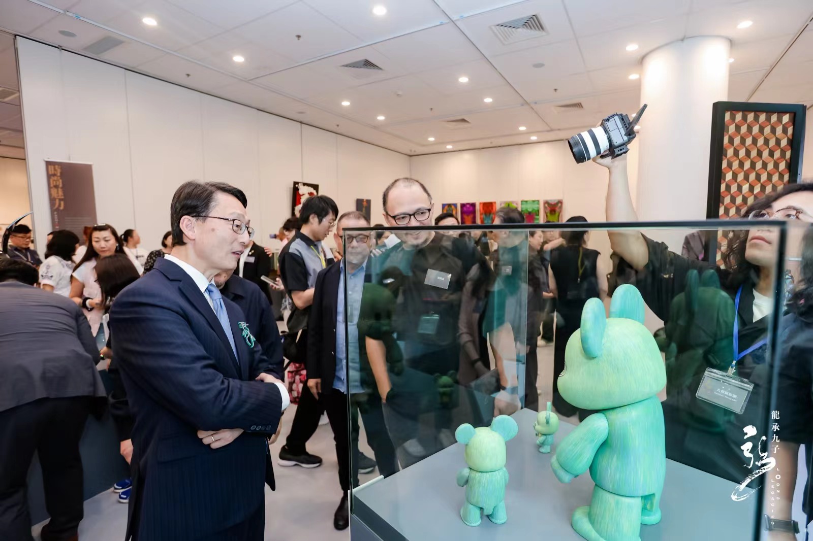 展覽的一大亮點是,李小龍和成龍這兩位象徵香港精神的傳奇人物,將通過藝術方式展現。他們的形象不僅代表香港的電影工業,也象徵着城市的核心價值。展品包括崔成安歷時大半年創作的30尺長畫卷《龍的傳奇》、李小龍和成龍的主題郵票及周邊產品等。此外,由許嘉雄設計的大型龍頭作品,以及黃文翰的2米高《飛龍在天》紙雕藝術品,成為現場必打卡點,展示香港非物質文化遺產與現代藝術的創新融合。