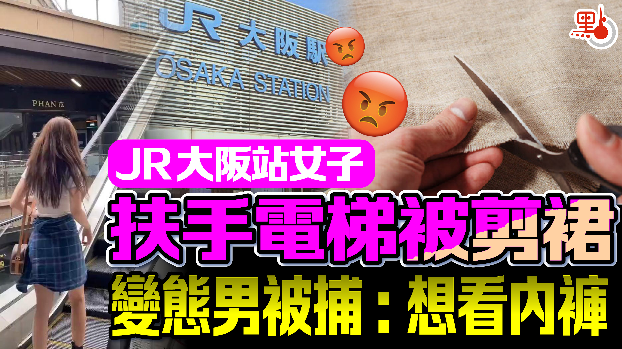 日本JR大阪站驚見變態男,一名20多歲的女子,在車站搭乘扶手電梯時,裙子被人剪開。警方翻查CCTV畫面後,拘捕一名31歲的建築工人,竟稱是因為想看女子的內褲,才會用剪刀剪裙子。