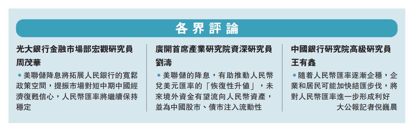 瑞穗銀行首席亞洲匯率策略師張建泰表示,美聯儲減息半厘為中國人行減息提供更多空間。