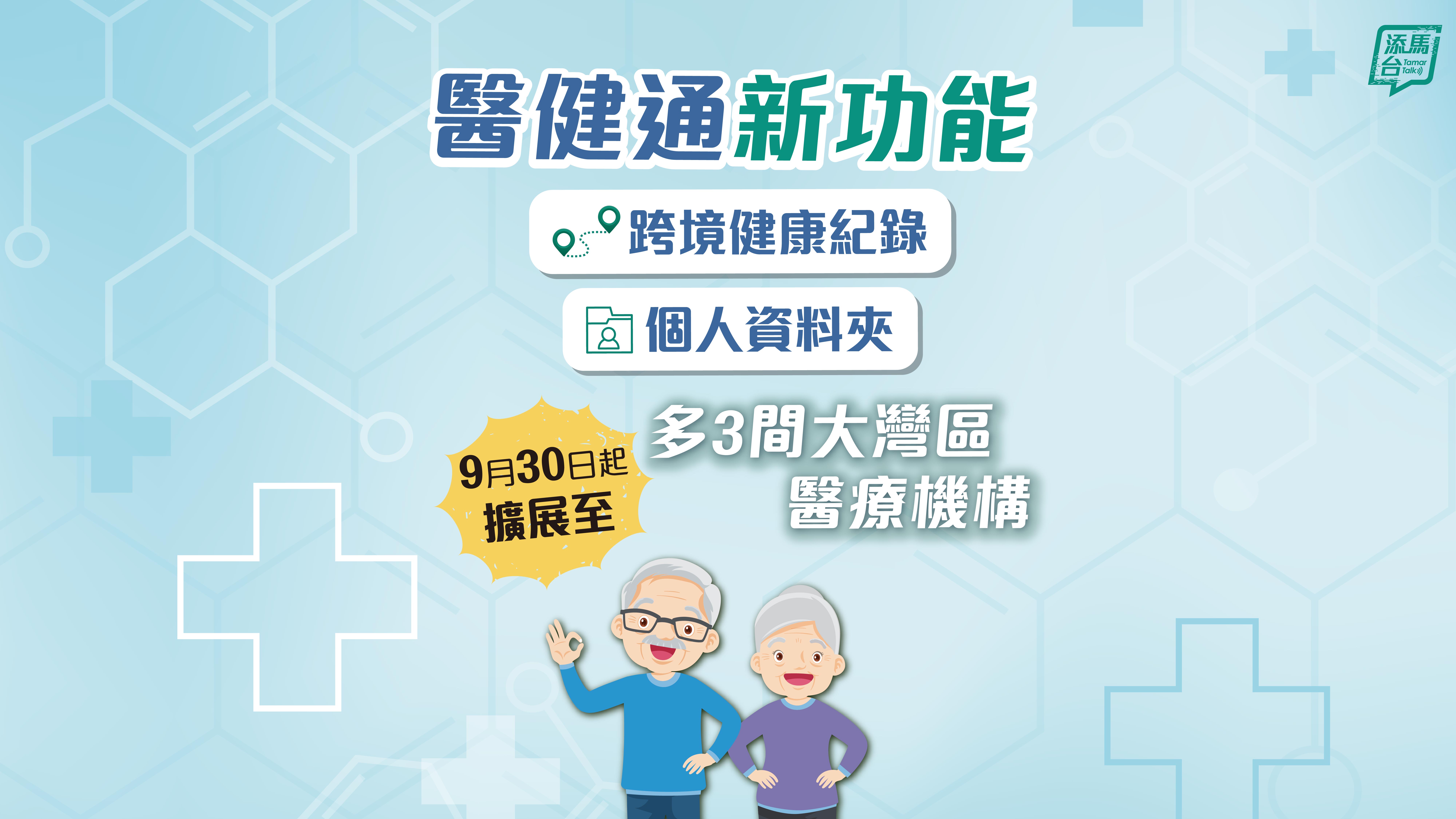 【點新聞報道】由今日(9月30日)起,醫健通流動應用程式的「跨境健康紀錄」及「個人資料夾」新功能,擴展至「長者醫療券大灣區試點計劃」下的中山大學附屬第一醫院南沙院區、東莞東華醫院和深圳新風和睦家醫院,以便利香港市民安全地跨境使用電子健康紀錄,獲取更連貫的醫療服務。