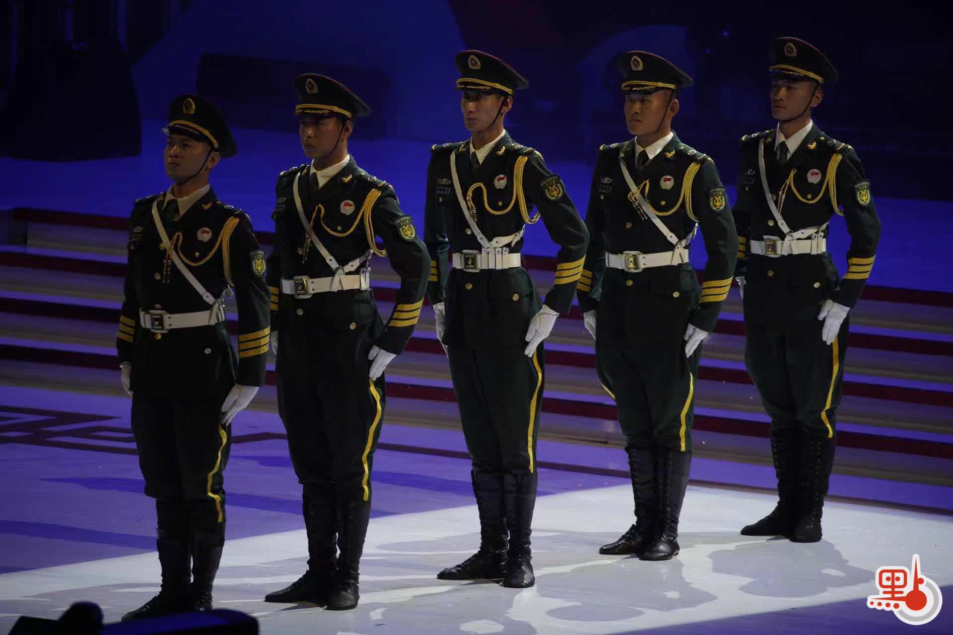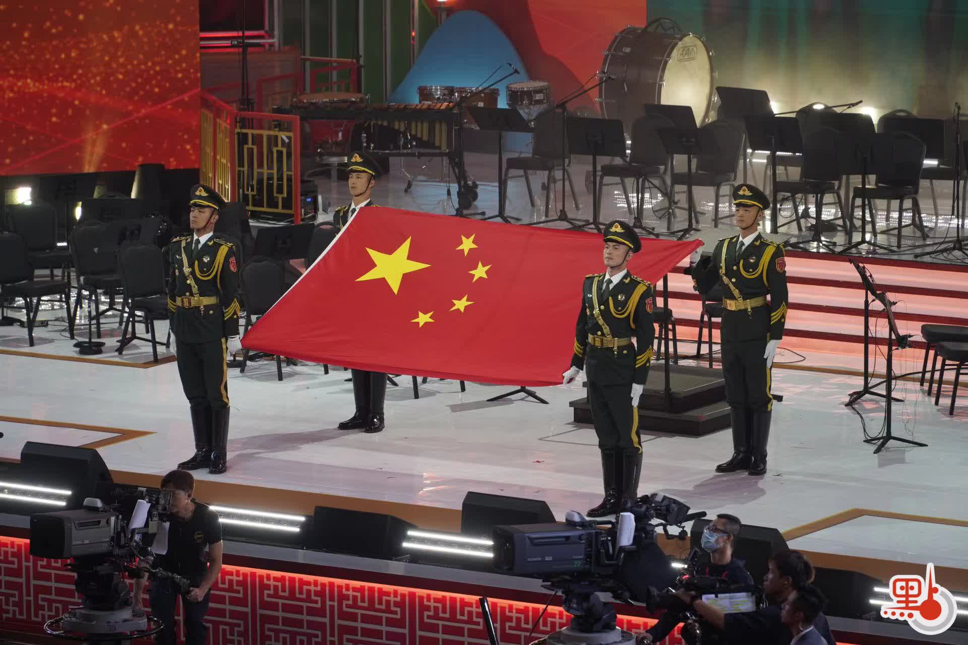 文藝晚會開始,中國人民解放軍駐香港部隊儀仗隊進場,現場舉行奏唱國歌環節。之後,全國政協副主席梁振英致辭。