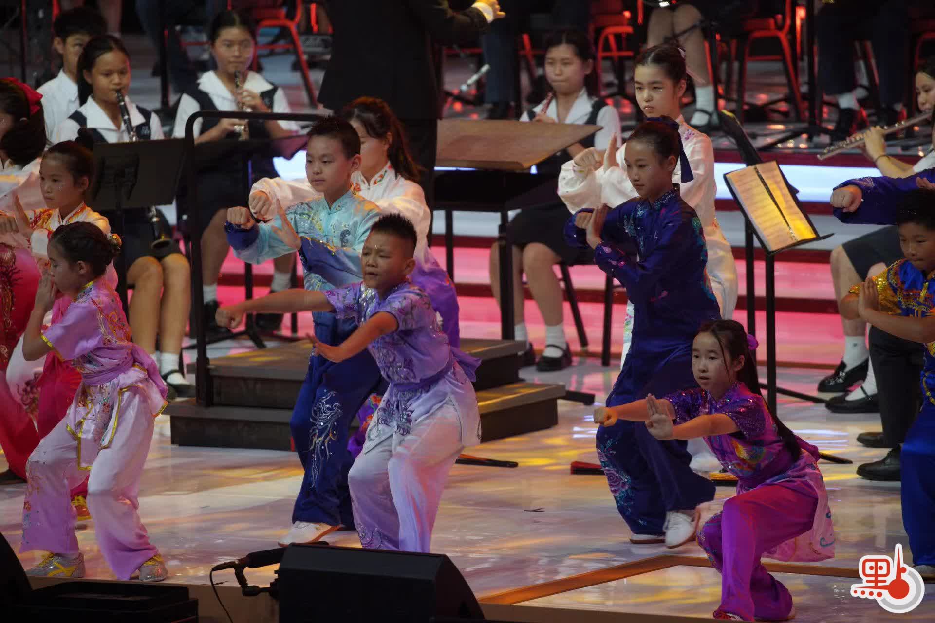接着是精彩的武術和舞蹈表演。隨後的「俠之大者 為國為民」篇章,保良局蔡繼有學校中學管樂團與弘立書院武術隊,合力帶來武術表演。短片播放了中國香港奧運健兒的祝賀,黃金寶等運動員也在現場同賀。