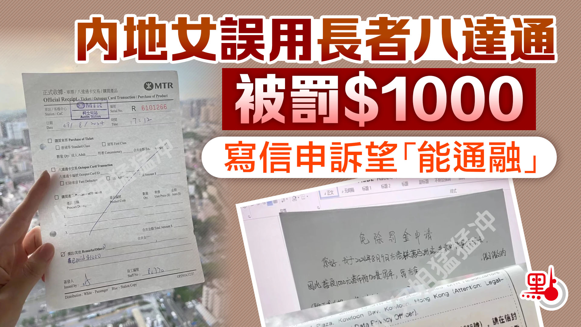 內地女誤用長者八達通被罰$1000 寫信申訴望「能通融」