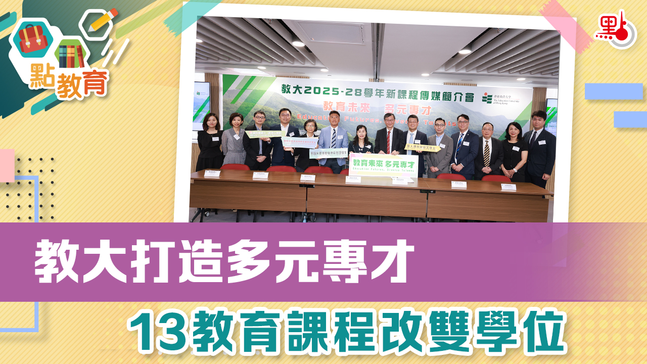 香港教育大學昨日(21日)召開以「教育未來 多元專才」為主題的傳媒簡介會公布新課程安排,在2025/26學年起教育學士課程將全線成為雙學位課程,並開辦三個新的學士課程,同時推出新的獎學金計劃。