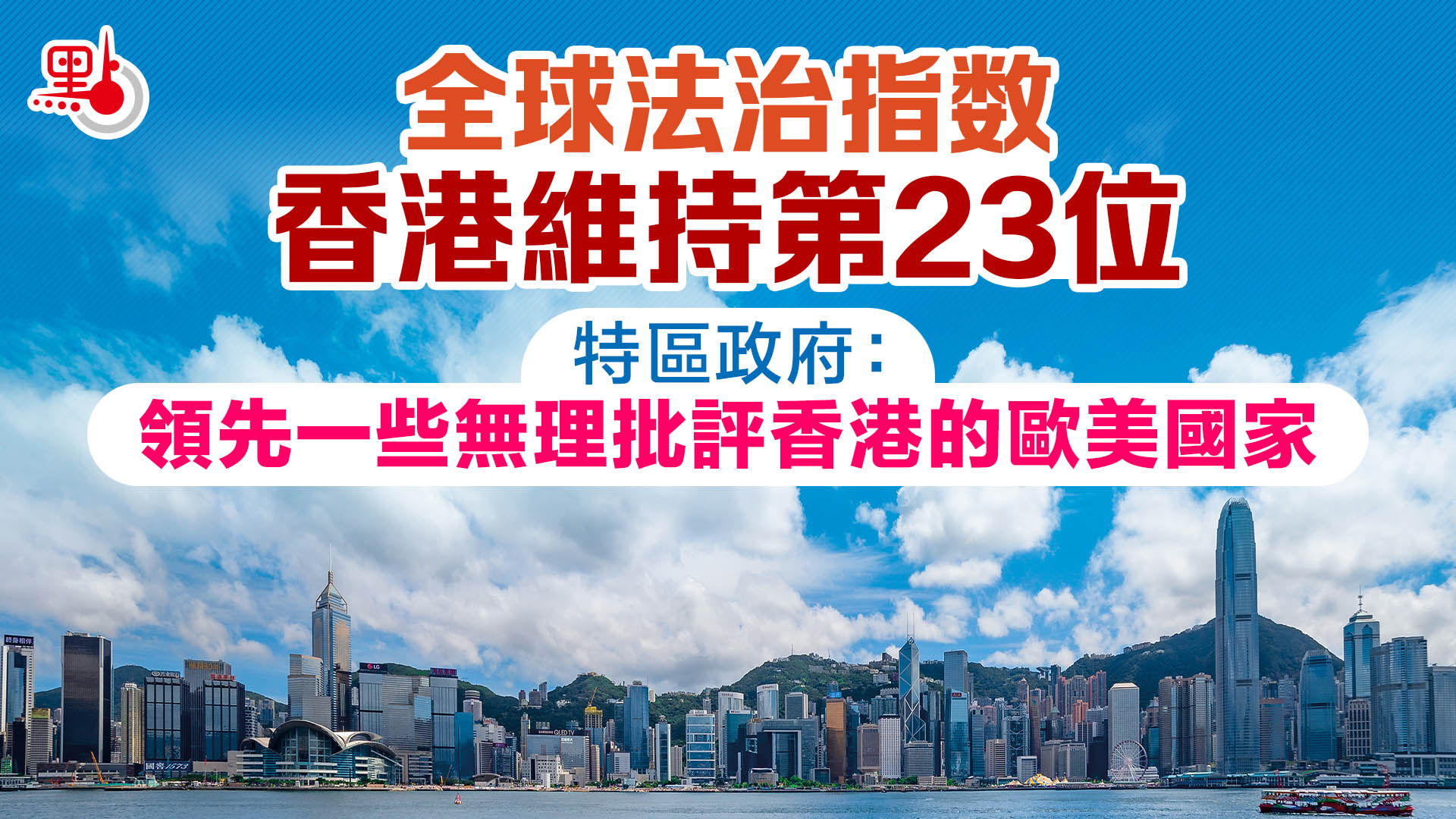 全球法治指数香港維持第23位 特區政府:領先一些無理批評香港的歐美國家