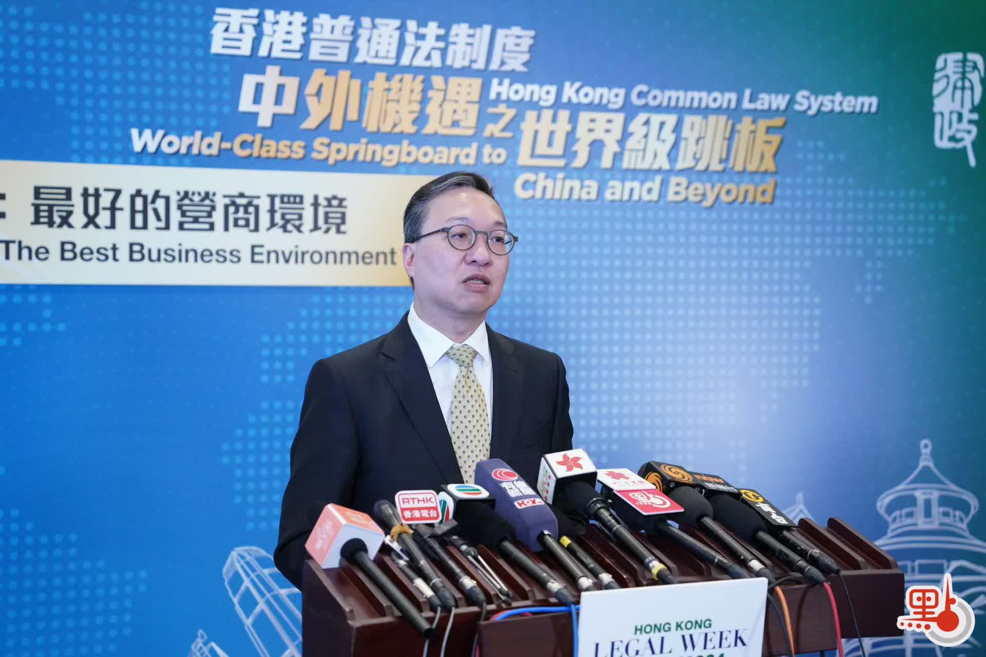 【點新聞報道】律政司司長林定國今日(8日)在香港法律周尾日論壇後見記者,他指出,今年法律周有來自近50個不同地區的約2500人線上或親身參與,包括不同地方法律人才、外國領事、駐港商會代表等。他表示,希望透過法律周5日的活動,顯示和探討香港如何用好普通法制度。這是「一國兩制」下的獨特優勢,透過香港國際化、高水平、優質的法律服務,聯通內地及世界的其他地方。