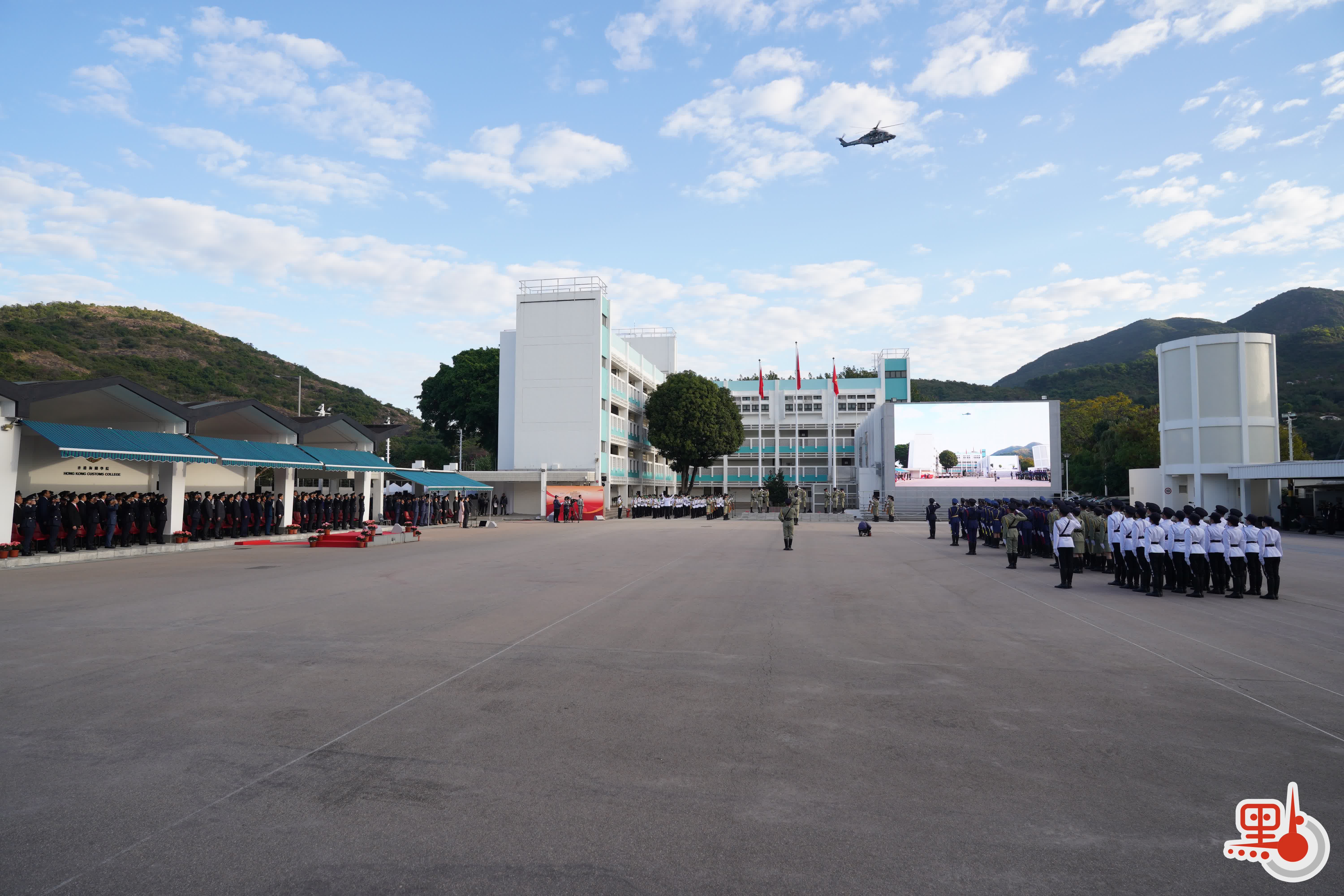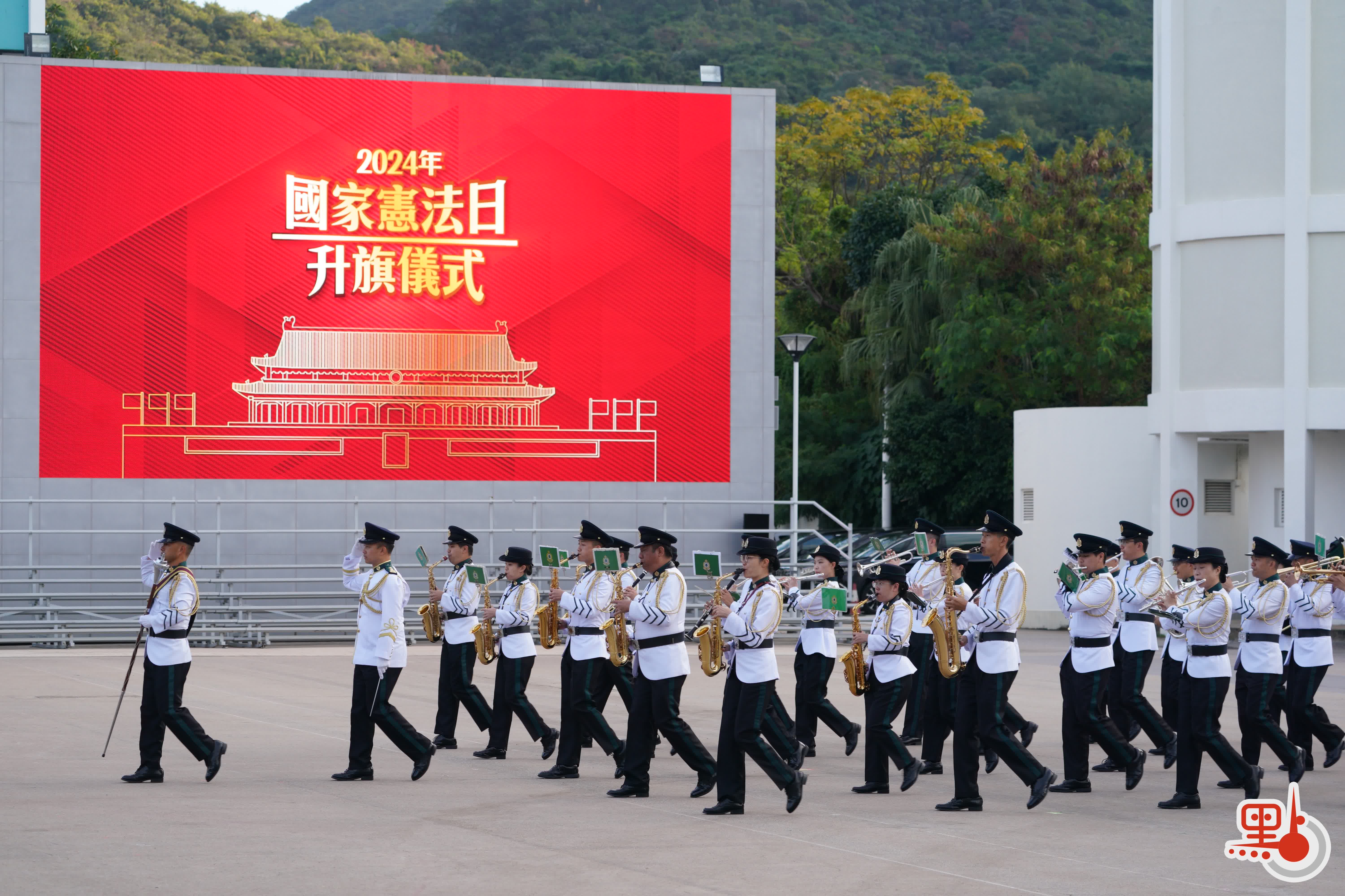 【點新聞報道】12月4日是國家憲法日。保安局帶領轄下紀律部隊今日(4日)上午在香港海關學院舉行國家憲法日升旗儀式,律政司司長林定國為升旗儀式主禮,逾百人的紀律部隊儀仗隊及護旗方隊以中式步操進場並進行升旗儀式,現場奏唱國歌,政府飛行服務隊直升機在空中敬禮,海關樂隊接着表演軍樂操為儀式作結。