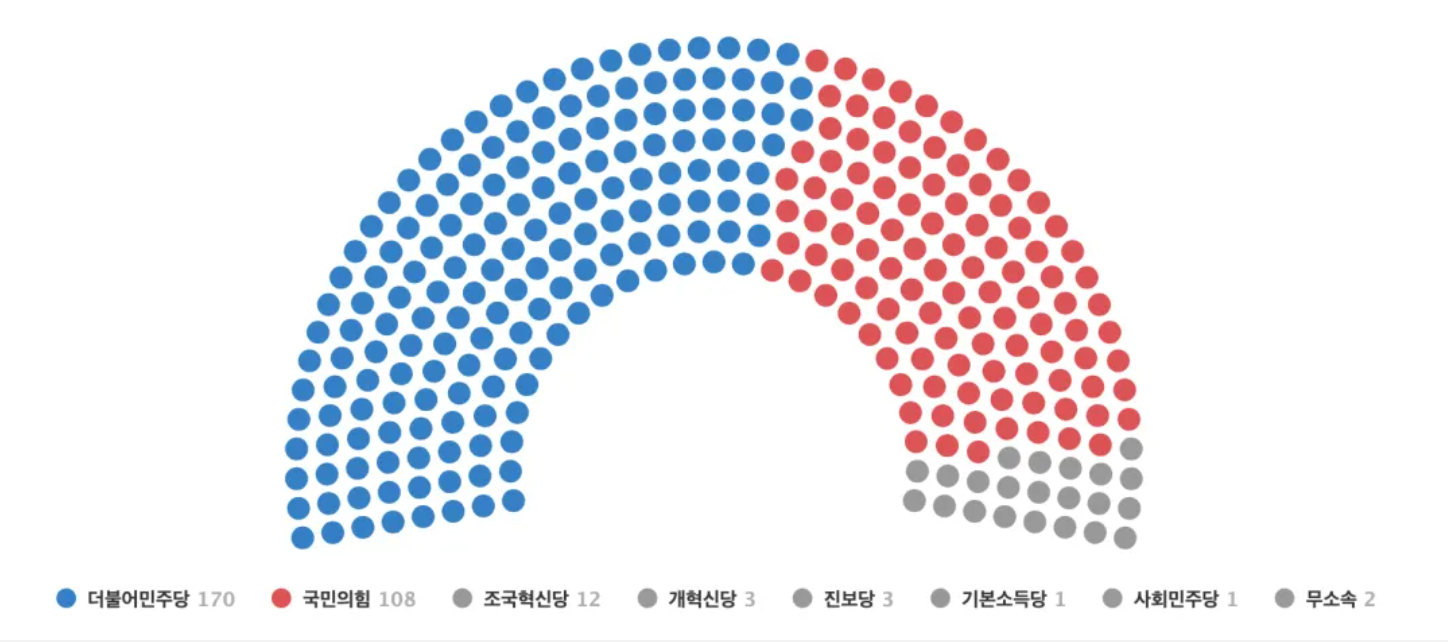 目前韓國國會內包括最大的在野黨共同民主黨在內,在野陣營共擁有192個席位,執政黨擁有108個席位,在全部在野陣營國會議員均投票贊成彈劾的前提下,僅需8名執政黨國會議員投票贊成,尹錫悅彈劾案就將通過國會。