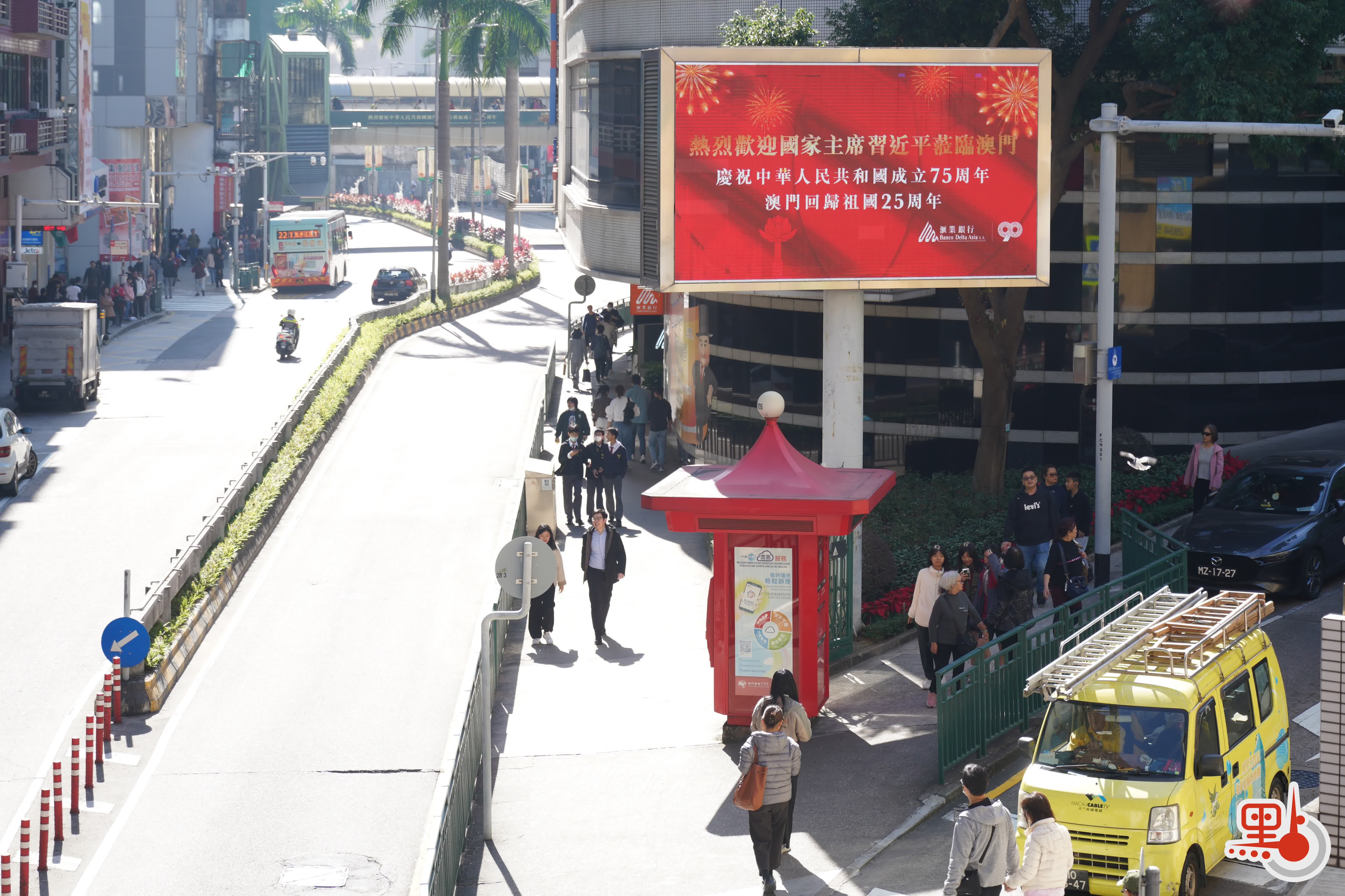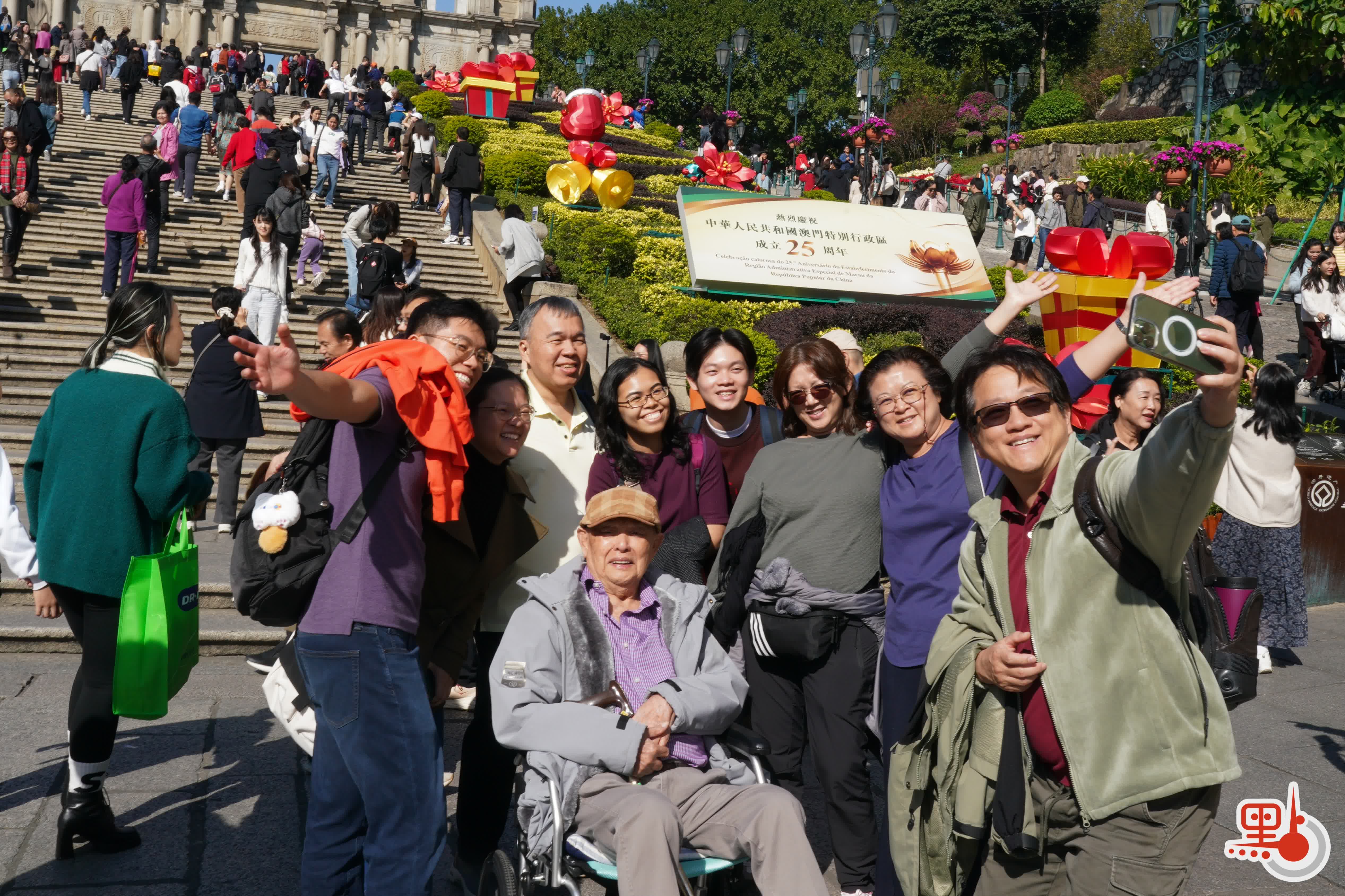 (多圖)澳門回歸25周年|街頭「盛裝打扮」 市民遊客笑容洋溢