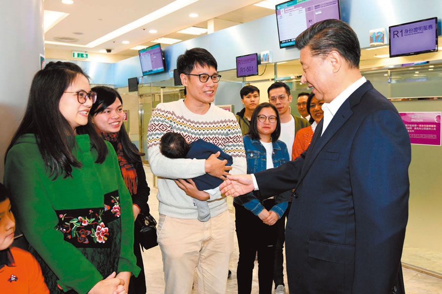 習近平主席視察黑沙環的政府綜合服務中心,其間同正在辦理業務的市民交談。習近平表示,能夠感受到澳門同胞生活不斷改善,感受到澳門回歸 20年來發生的歷史性變化。他祝願大家身體健康、生活幸福。