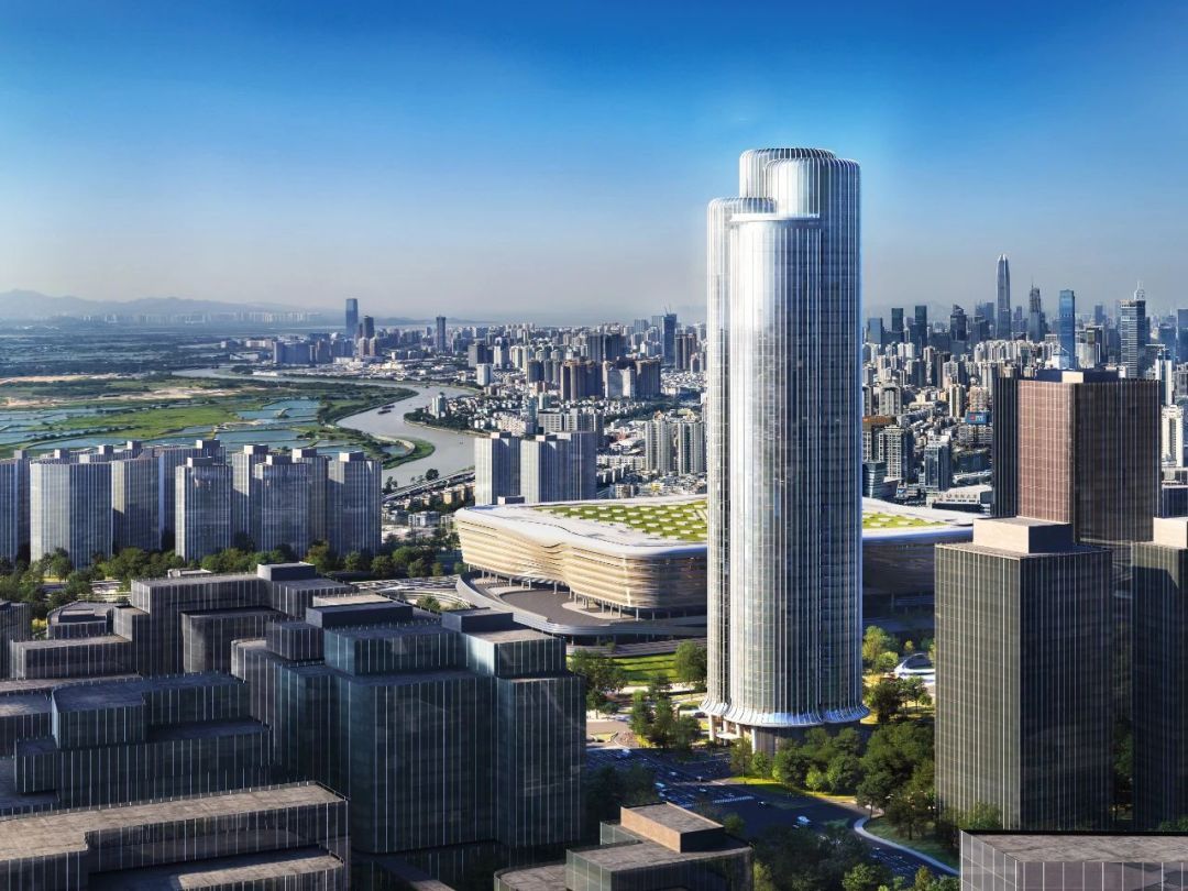 新皇崗口岸綜合業務樓項目,位於深圳福田區福田南路與百合三路交匯處,總建築面積約17萬平方米,地下5層,地上50層。項目由Aedas、華陽國際和深圳市綜合交通設計研究院設計,以「流水疊石」為核心理念,是深圳河套深港科技創新合作區「一心兩翼」規劃布局的核心建築。建成後,項目將服務於新皇崗口岸非現場業務工作,成為串聯「廣深港科技創新走廊」的重要樞紐。