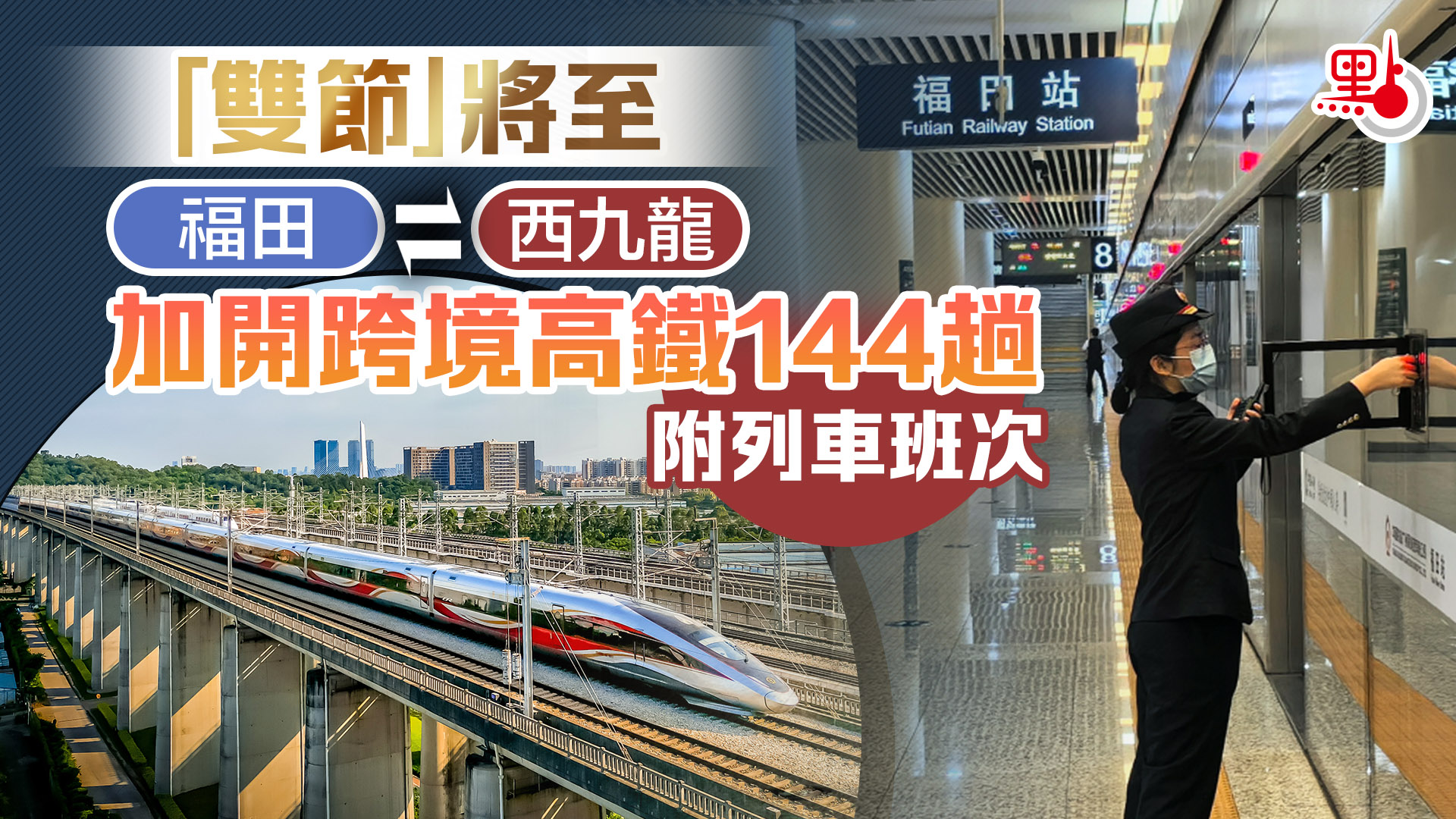 【點新聞報道】「雙節」將至,據廣鐵集團深圳火車站,深圳福田站往返香港西九龍站將於12月24日至12月29日加開高鐵班次144趟,滿足兩地市民假期出行需求。