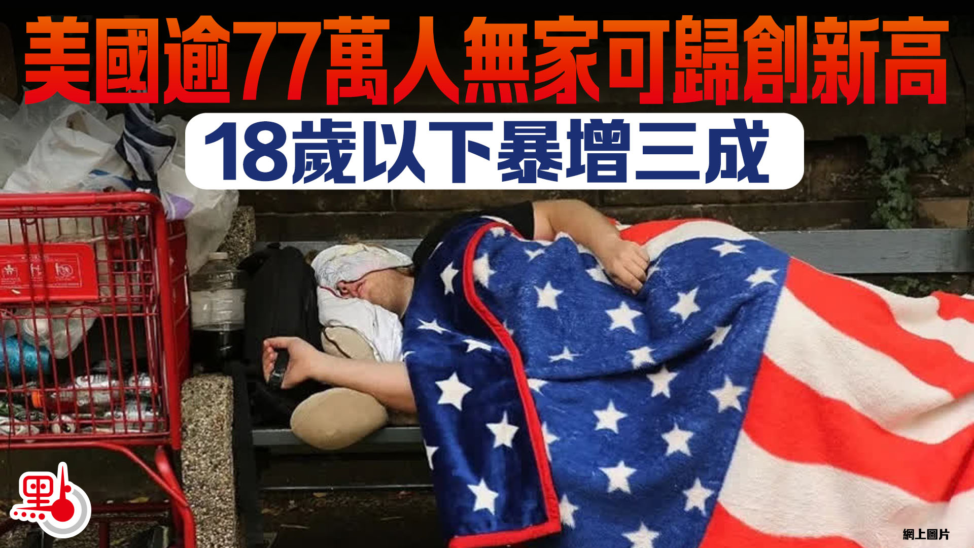 美國逾77萬人無家可歸創新高 18歲以下暴增三成