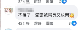 有網友表示:「愛妻號局長又放閃」,也有網友笑稱:「偶像好閃呀,好有承擔的男人」。這則帖文不僅讓大家看到鄧炳強的寵妻一面,也讓市民感受到他在繁忙公務之餘,對家人的重視與關愛。