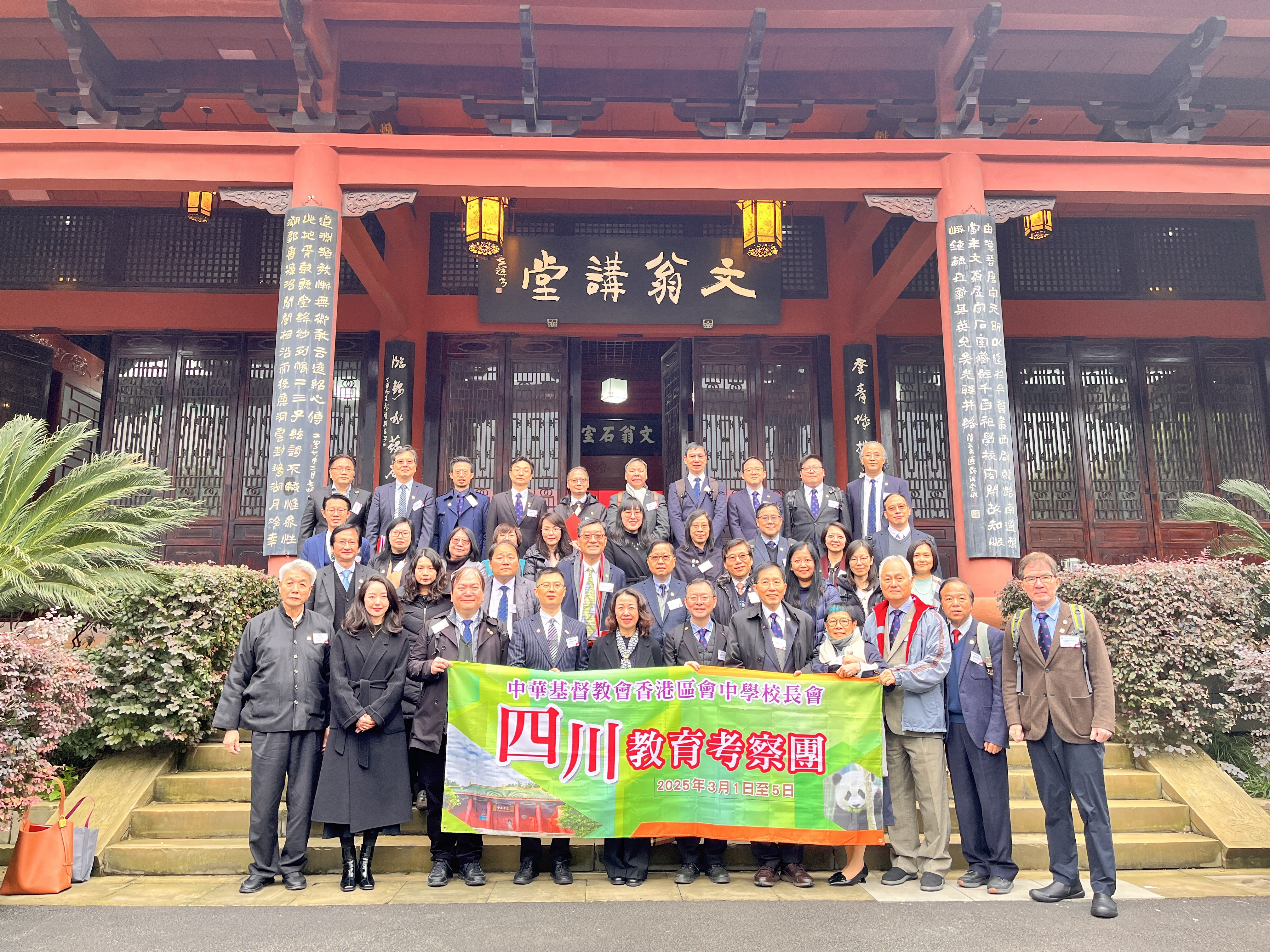 常言道「讀萬卷書,行萬里路」,實地考察最能讓參加者明白一地之文化精神面貌。中華基督教會香港區會(下稱:區會)的中學、小學、幼稚園及特殊學校共有82所,是香港三大辦學團體之一,由區會中學校長會於2025年3月初舉辦為期五天的「四川教育考察團」,到訪成都重點的歷史文化地方,與當地中學、醫學院、高端企業進行交流;這次行程大大加深了區會26位中學校長及12位校監對當地文化、教育現況及國家高速發展的了解,深深體會到國家興盛與教育、科研的緊密關係,也進行專業學術交流。