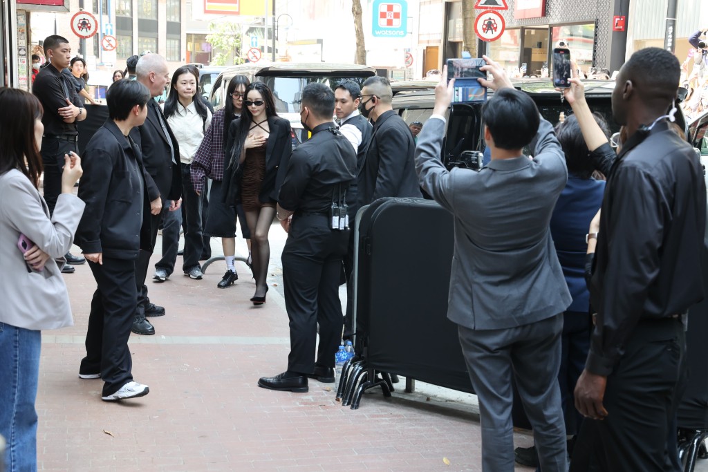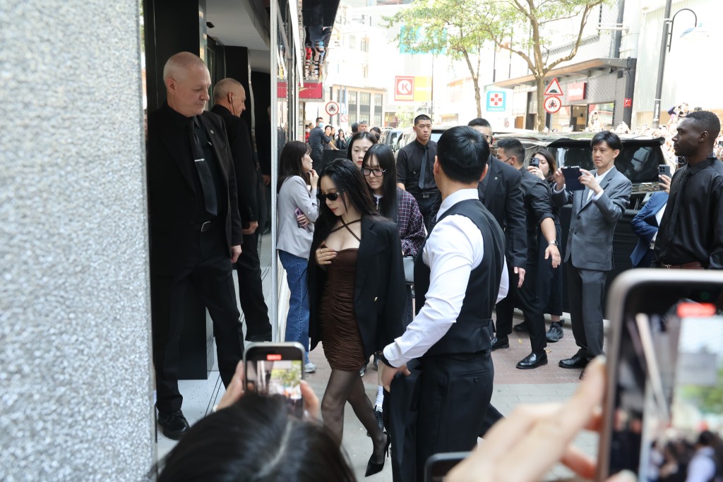 現場逾百位粉絲在店舖對面街聚集,大約10多名保安在場維持秩序,並以圍欄架起粉絲區,有粉絲更帶備櫈仔企高拍攝偶像。泰妍大約下午1時許到達,她戴上黑超,散下秀髮,cool爆亮相。