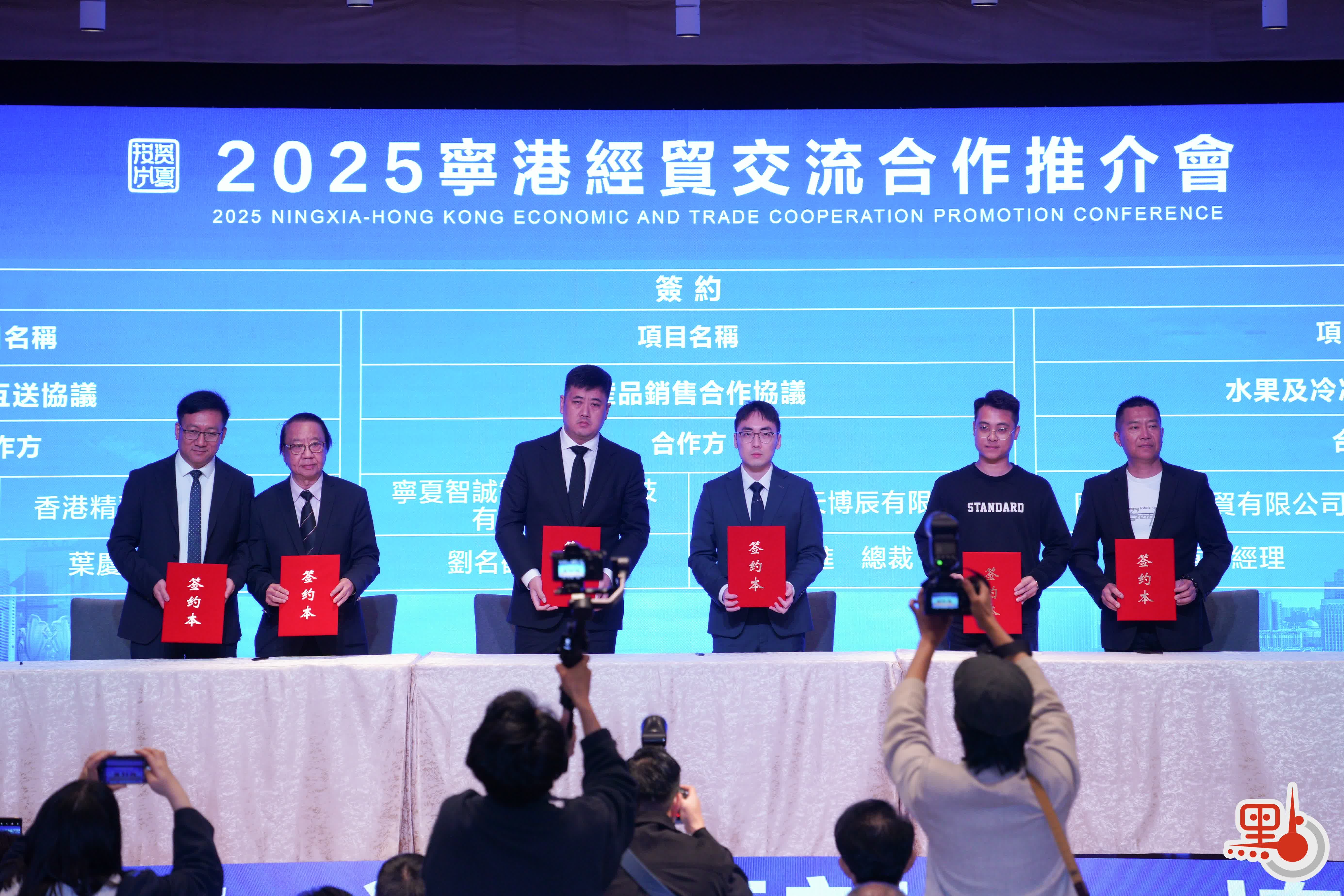 【點新聞報道】由寧港合作諮詢委員會舉辦的2025寧港經貿交流合作推介會今日(9日)於灣仔舉行,多位寧夏自治區及香港官員、兩地企業代表出席活動,寧夏推介當地特色項目及產品,並與香港多界簽約合作協議。據悉,本次推介會推動合作成果共46個,簽約金額為45.2億元。