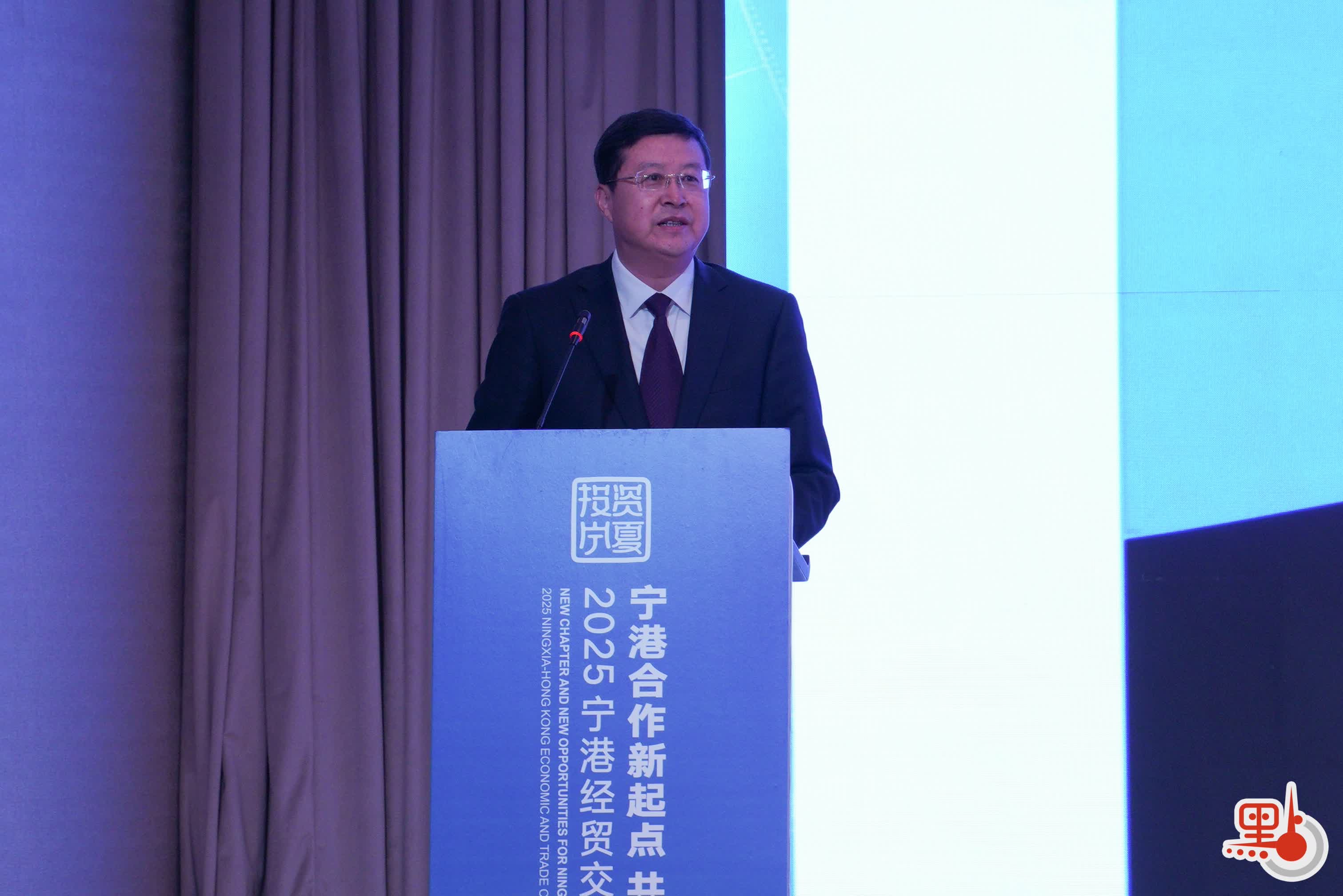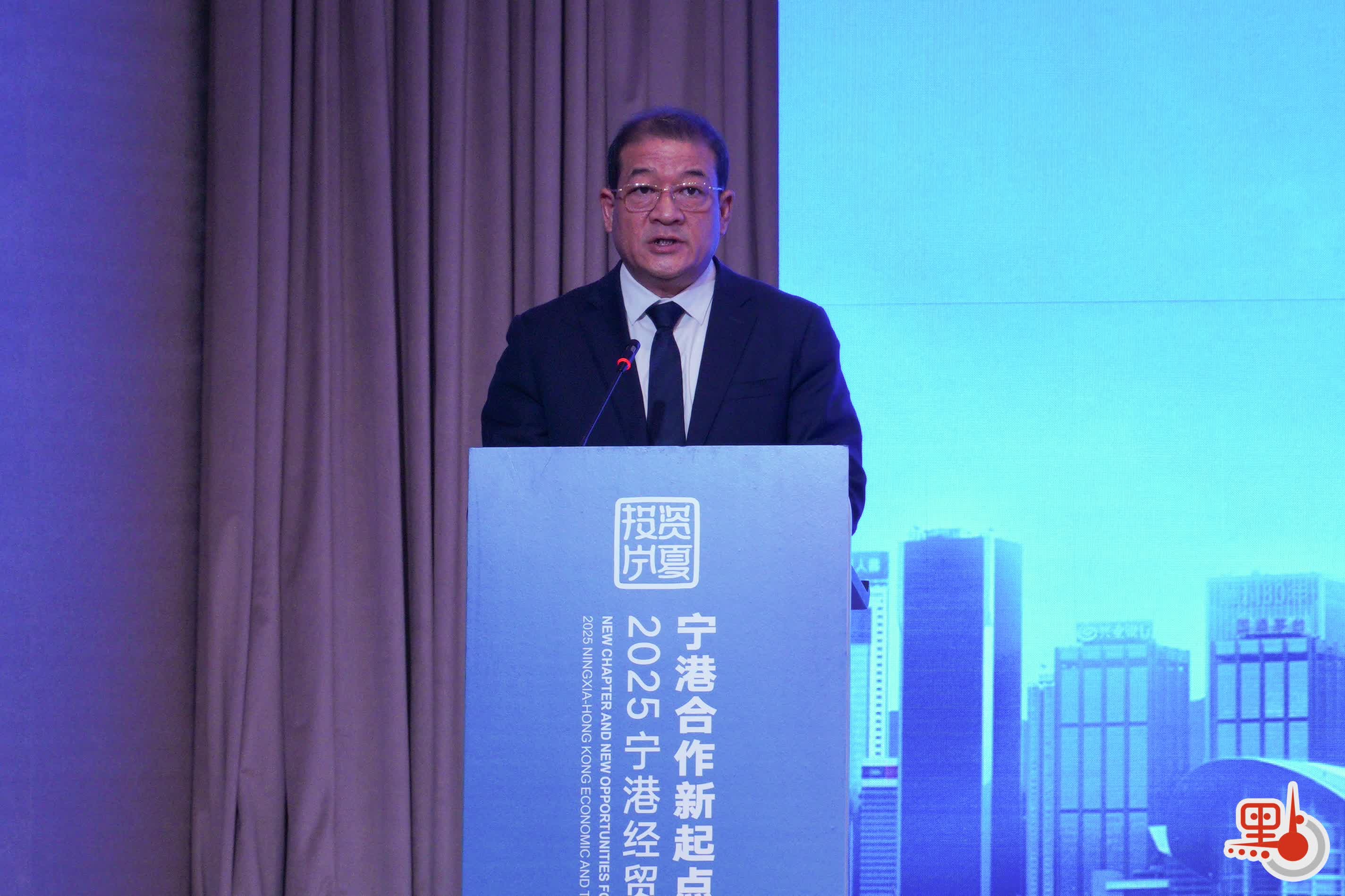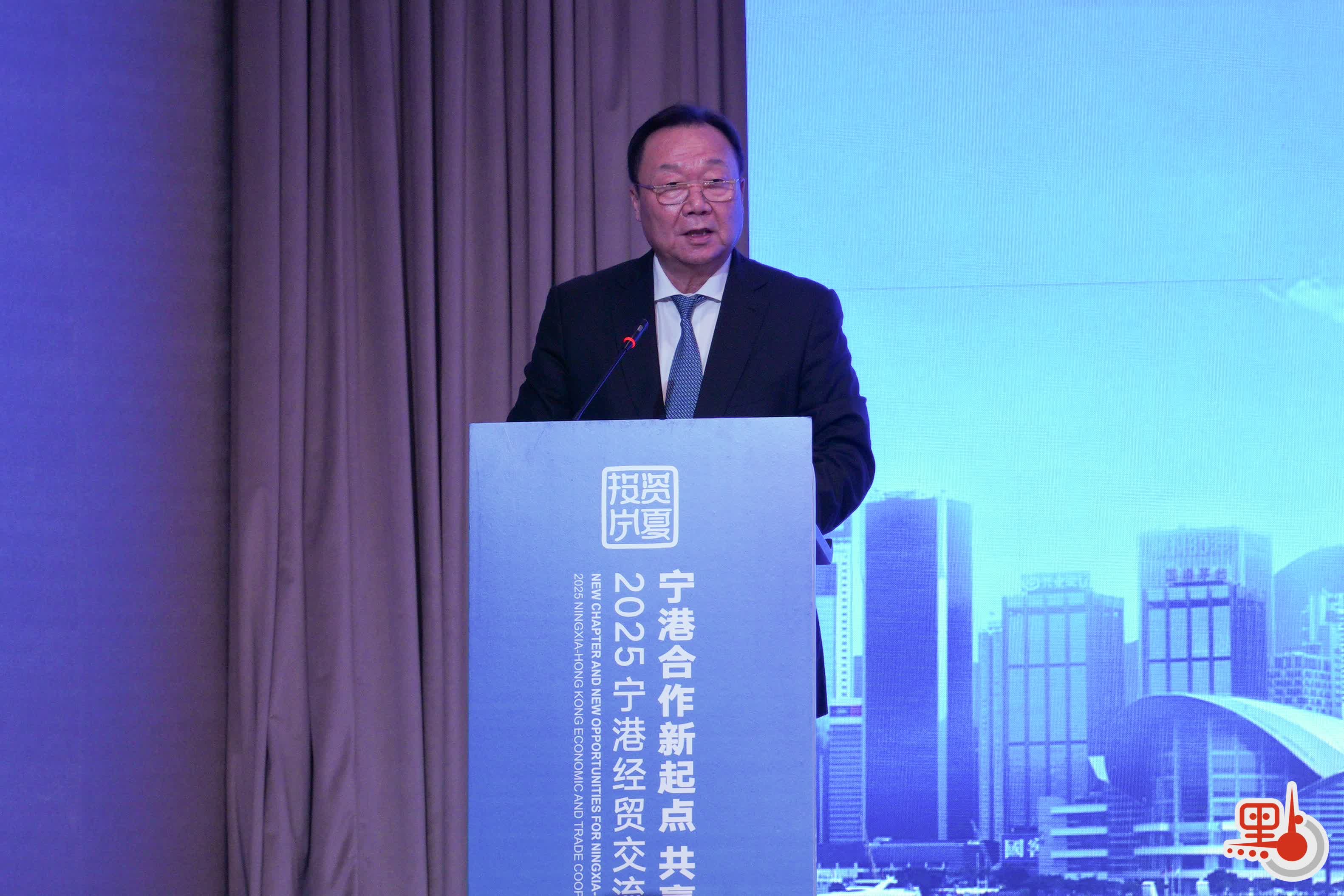 前行政長官、全國政協副主席梁振英原定出席活動並講話,但因事未出席,「一帶一路」國際合作香港中心、大灣區香港中心董事、寧港合作諮詢委員會主任岳毅代其致辭表示,香港自由開放,擁有10.4萬家貿易公司,貿易總額是香港GDP的3.3倍,香港的優勢在於對國際市場貿易規則的熟悉,信息全面,準確及時,貿易商靈敏、誠信度高,香港還有擁有一流的物流、通訊、獨立檢測、金融服務。寧港合作可助力寧夏走好高質量發展的最後一公里,讓好東西走向更大市場,尤其是國外市場,並賣上更好價。他表示,雙方合作已經萌芽扎根,其長勢良好,期望盼到共同枝繁葉茂開花結果的一天。