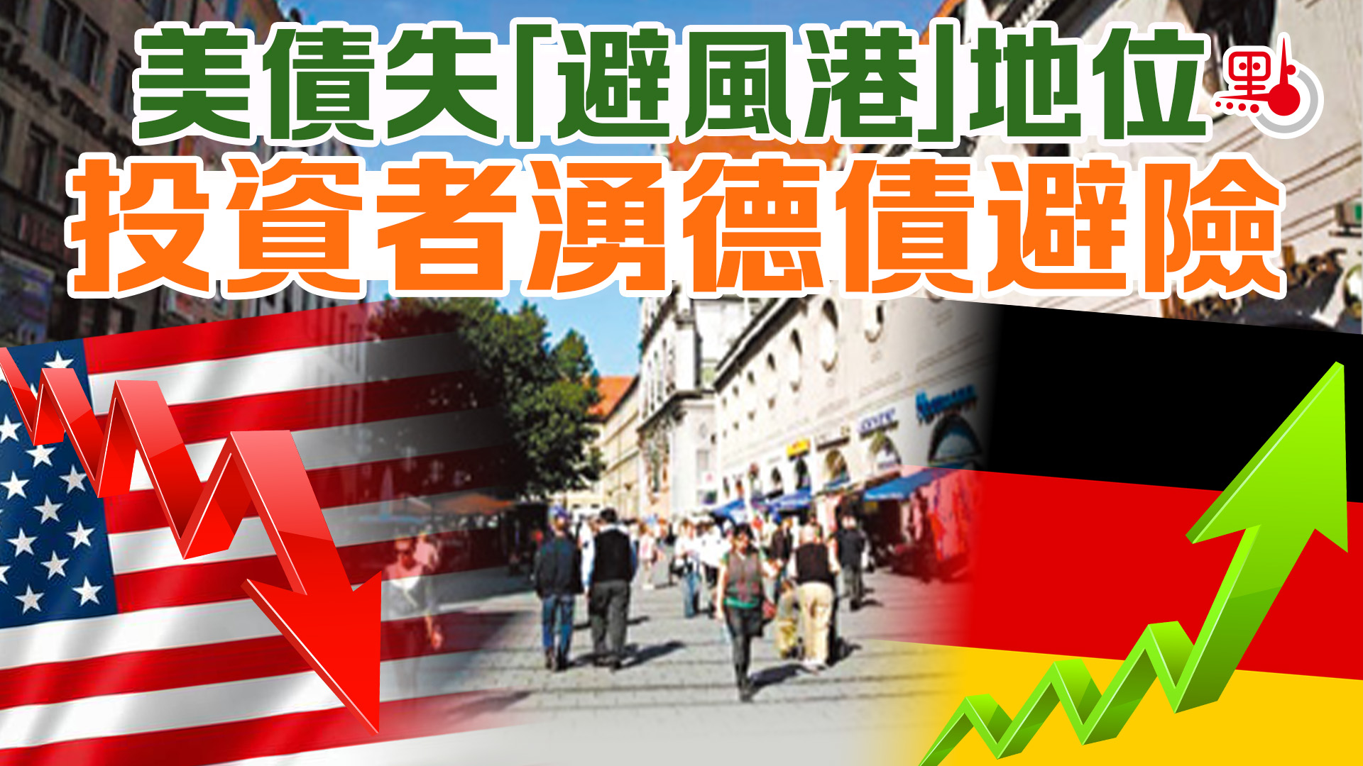 在美債沽壓沉重之際,投資者紛紛湧入德國國債避險,使美債對德債的相對表現出現1989年以來最差一周。富達國際集團經理高席爾指出,全世界正尋找美國國債的可能替代品,「在當前環境下,德債質素相對較優勝,基於市場動盪不定,美國及英國國債愈來愈難以投資。」滙豐策略專家也表示,德債的安全信譽可能仍無可挑戰,因此雖然德國發債額創新高,但外資湧入德債仍有助壓低德國舉債成本,目前10年期德債孳息率約2.57厘,滙豐已將今年6月德債的預估孳息率從2.6厘下調至2.4厘。