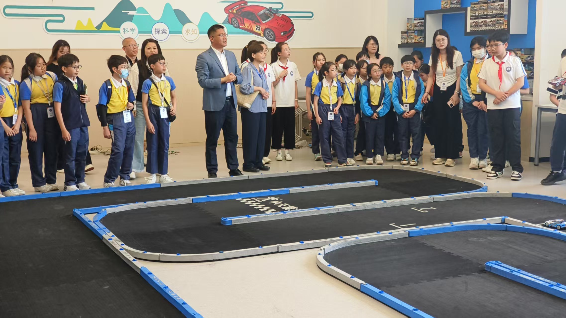 大源鎮中心小學的師生們熱情地迎接了來自香港的師生和家長,帶領大夥兒參觀校園。從充滿藝術氣息的教學樓走廊,到藏書豐富的圖書館,再到充滿活力的船模車模教室,同學們一路上驚嘆不已,感慨着學校設施的先進和校園的美麗。在互動環節中,兩地的孩子們攜手操控船模和車模。在大源鎮中心小學車模社成員的悉心指導下,同學們小心翼翼地推動遙控器,揣摸着如何讓船模和車模穩穩地駛向終點。兩地的孩子們興奮地互相激勵,這一刻,科技拉近了彼此的距離,友誼在笑聲中悄然萌芽。