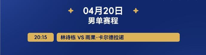 在男單決賽中,20:15林詩棟將對戰雨果·卡爾德拉諾。