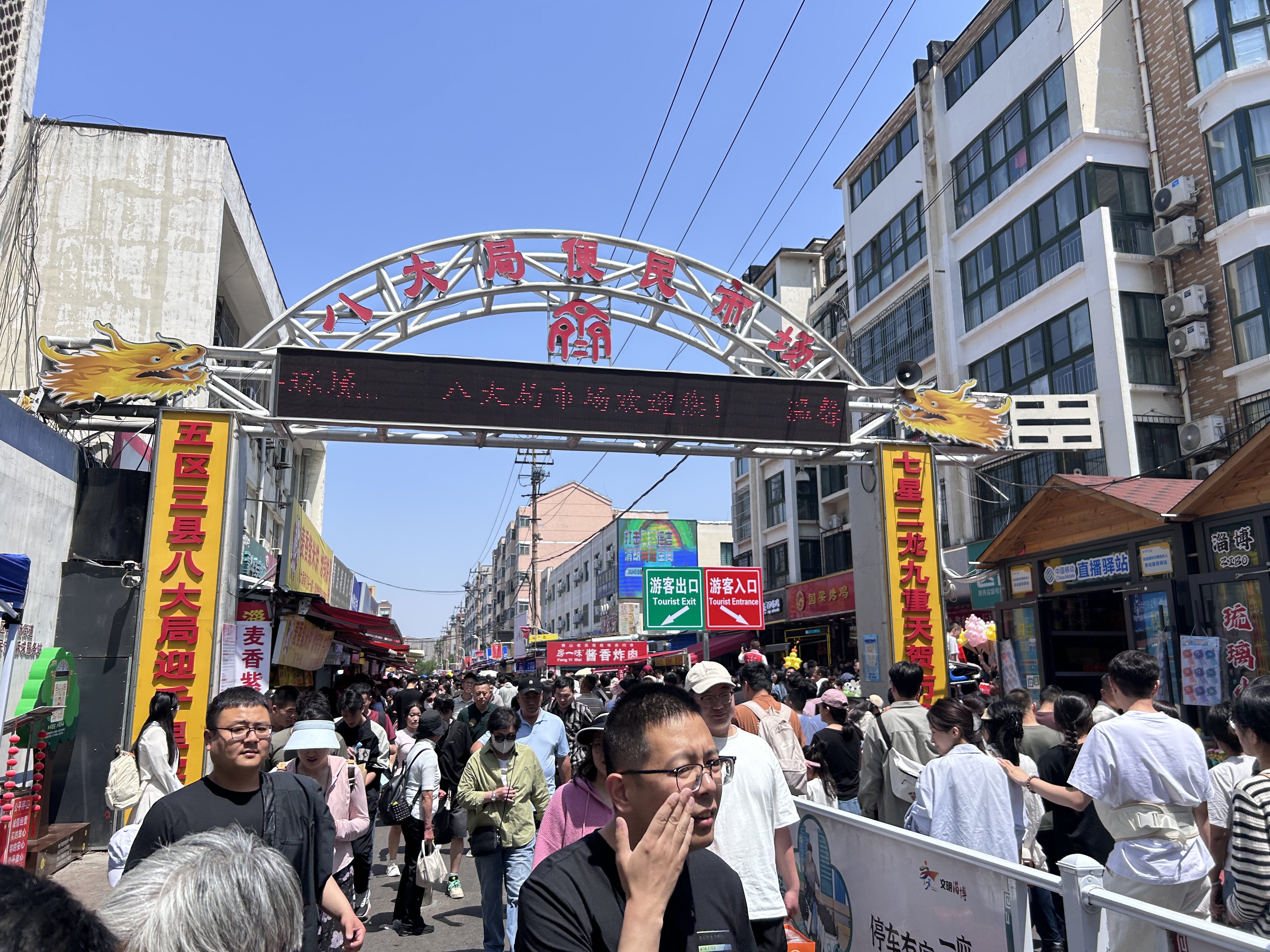 來自青島的遊客陳璽羽遊覽海岱樓後,感慨「感覺淄博來了一億人」。這座被譽為「中國最美書店」的海岱樓,是她此行的第二站,但最令她難忘的,還是人潮如織的八大局。「八大局的小吃街琳琅滿目,各類美食應有盡有,完全滿足了我們『吃貨』的所有期待!」同行的凌明輝興奮地向記者分享。在八大局,她品嘗了紫米餅、炒鍋餅,還有特色烤雞架,直呼這趟淄博之旅收穫滿滿。