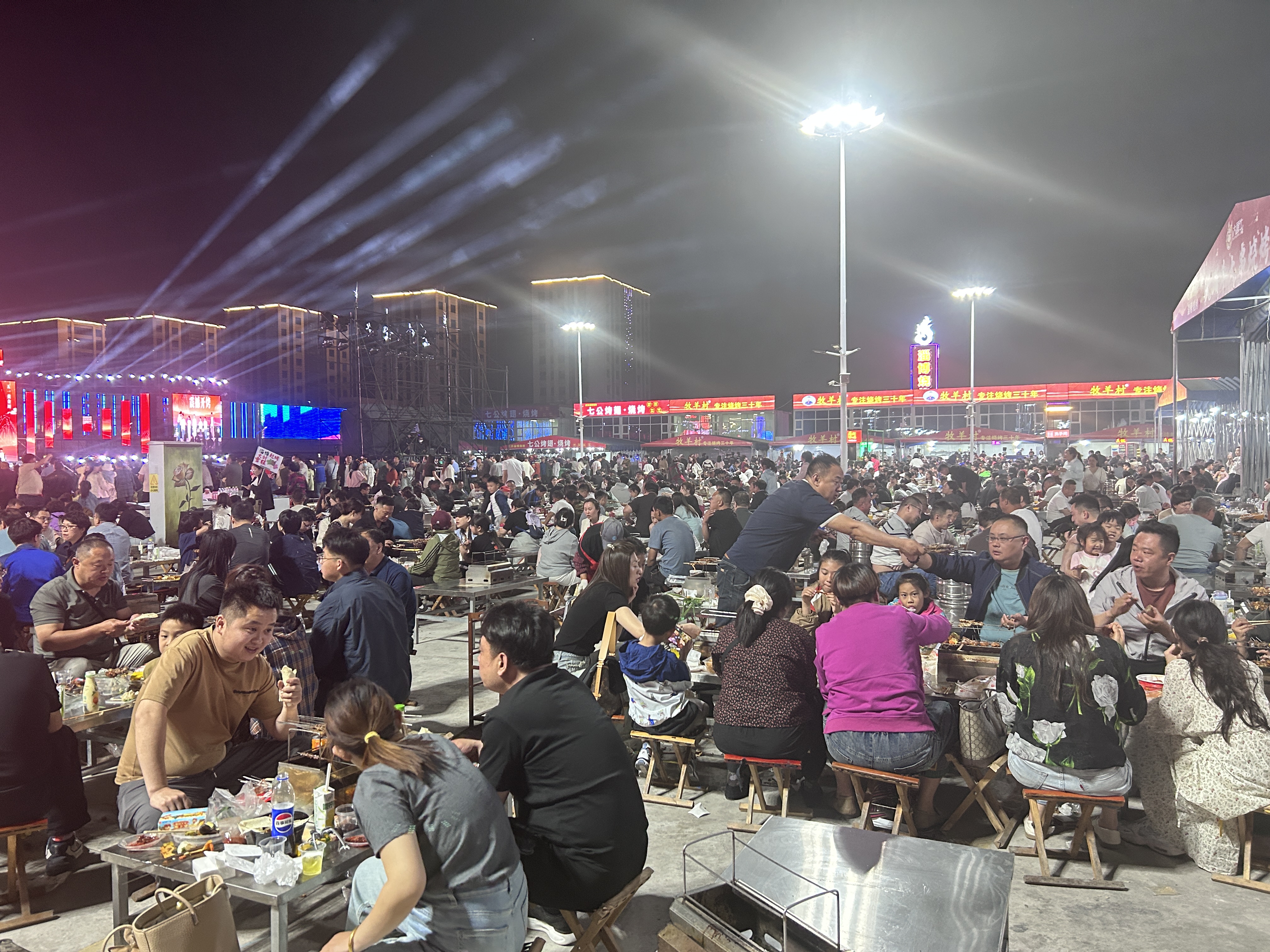 在淄博燒烤海月龍宮體驗地,一場場融合非遺、國潮與數字科技的主題音樂節每日精彩上演。「元宇宙燒烤攤」「淄博燒烤盲盒套餐」等創新活動,不僅讓遊客大飽口福,更為他們帶來一場場充滿煙火氣的視聽盛宴。「一邊吃着燒烤,一邊吹着晚風,聽着動感的音樂,整個人都特別放鬆、滿足!」來自濰坊的韓曉靜說道。作為此次淄博之行的首站,海月龍宮給她留下了深刻印象,接下來她還計劃前往淄川蒲松齡故居打卡。