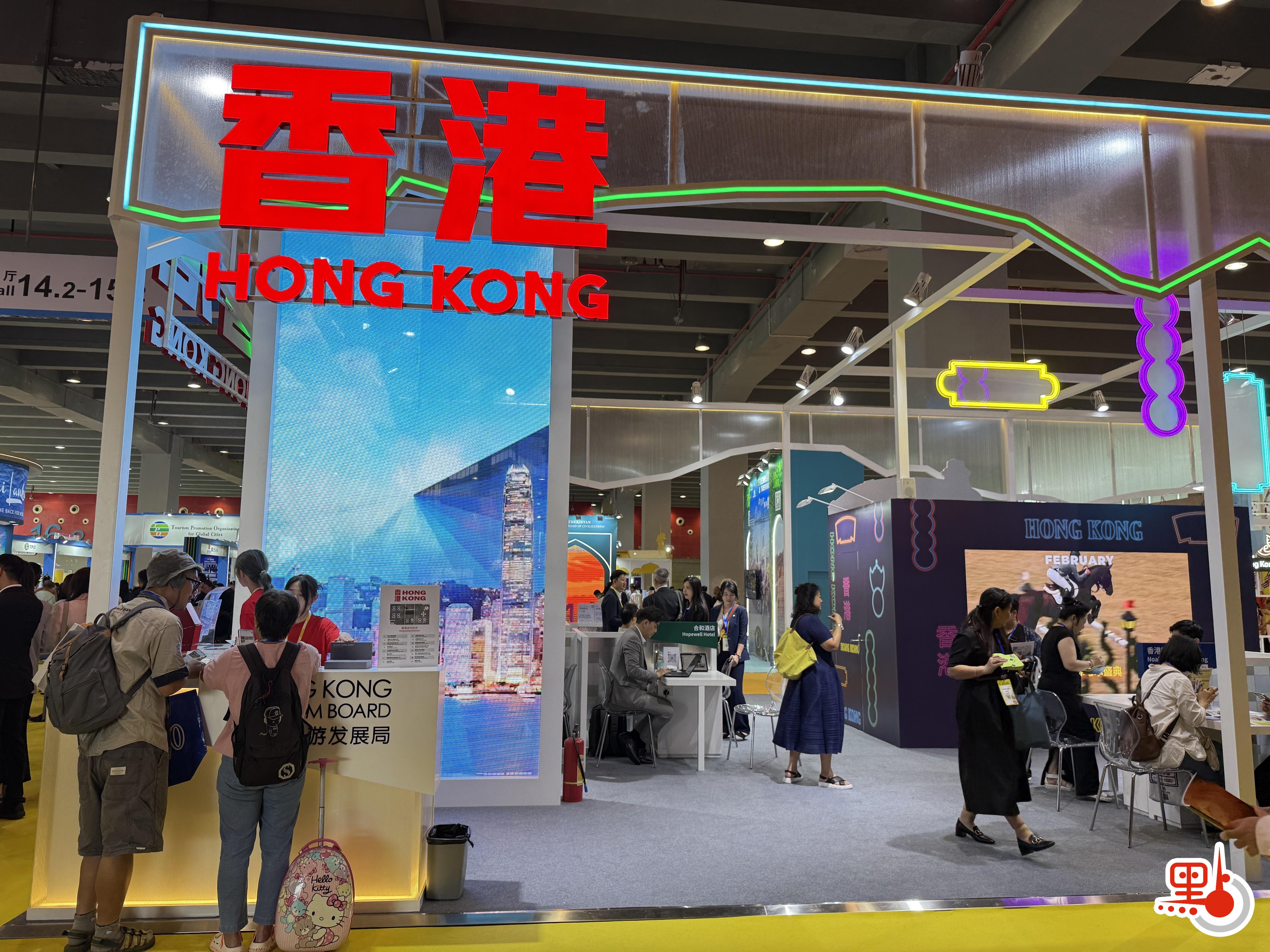 在展位設計上,香港不僅突出霓虹燈和茶餐廳等特色,還融合了香港天際線以及城市風貌的展示,同時特別設計了有趣的打卡裝置,希望讓觀眾從互動體驗中感受到香港的好吃好玩。