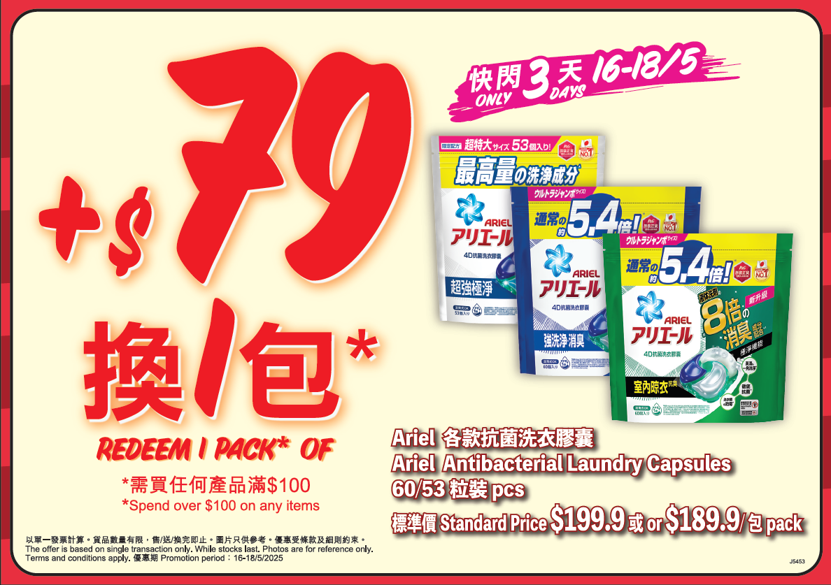 - 購買任何產品加$18:換購Crest佳齒香氛鎖白牙膏