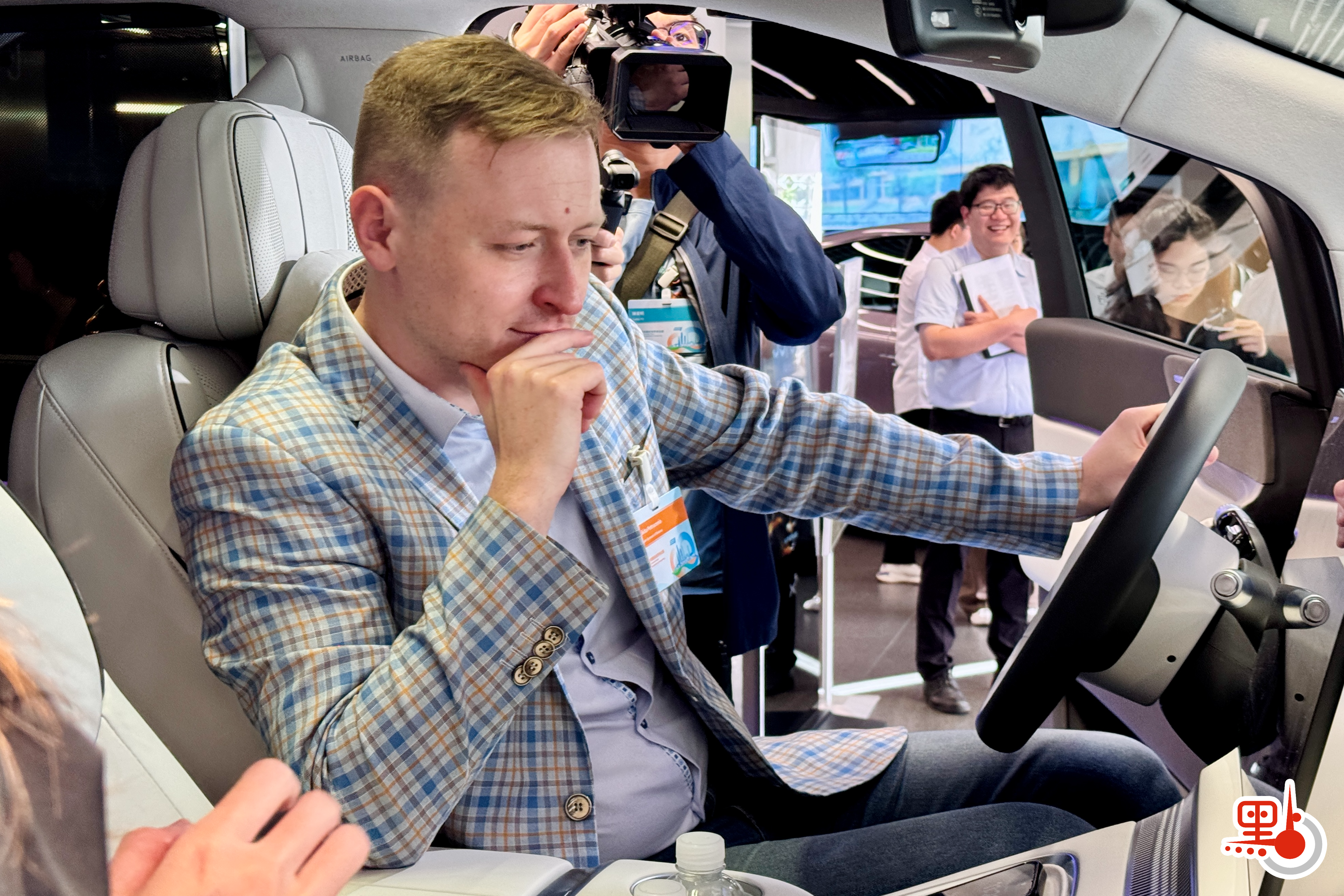 圍着一輛車門敞開的最新款小鵬X9,參訪團代表們從各個角度仔細觀察起來。工作人員介紹,這款車型集成自研AI芯片、端到端大模型智駕系統以及主動式底盤技術,被視為小鵬從「智能+電動」向「AI驅動+全球拓展」戰略轉型的代表性產品,對汽車工業有興趣的領事代表現場上車「試駕」,體驗其AI智能化水平。「自動駕駛的模式非常有吸引力,他們在車子上內置了人工智能技術,這很酷。」孟加拉國駐港領事Md Kamrul Hasan表示,中國與孟加拉國的合作正在不同領域進行,此次參訪對領事官員和其他商業人士來說,也是收集更多關於不同商業、投資領域進展信息的好機會。