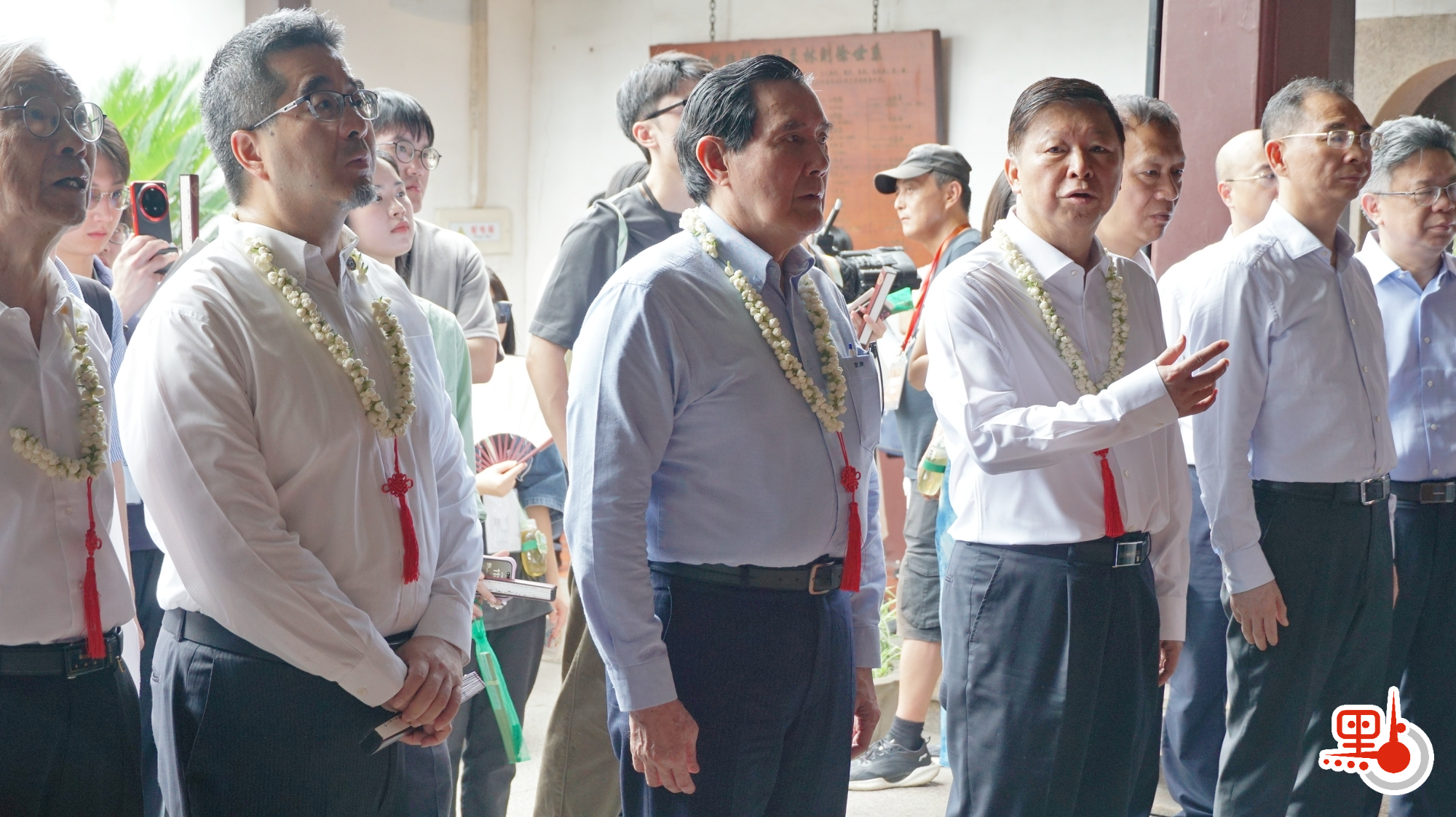 馬英九與赴台學子相見歡 獲贈茉莉花環「馨香盈懷袖」