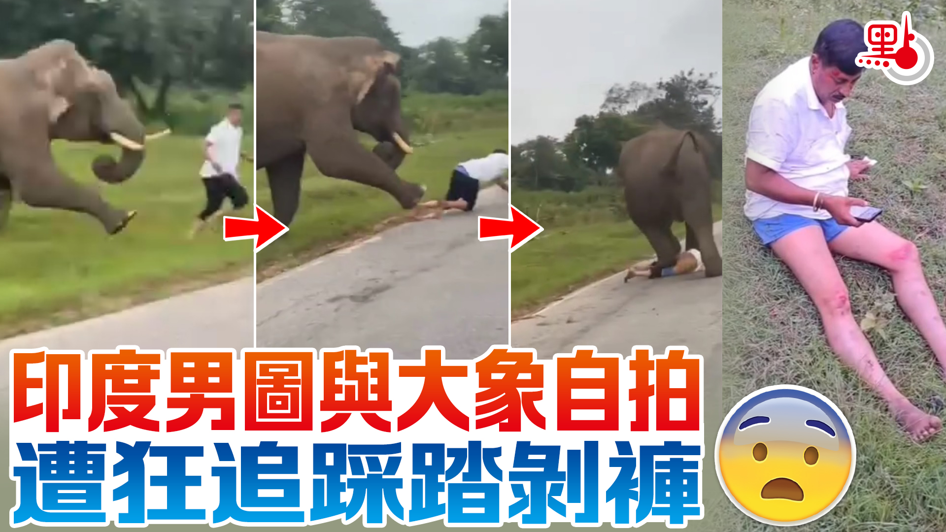 印度男圖與大象自拍 遭狂追踩踏剝褲
