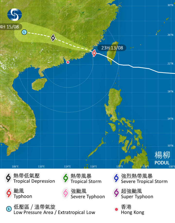 天文台會視乎「楊柳」的減弱速度、與珠江口的距離及本地風力變化,評估是否需要今早稍後改發三號強風信號。