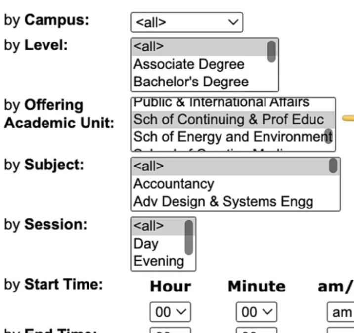 - 在「Master Class Schedule」中篩選 「Sch of Continuing & Prof Educ」