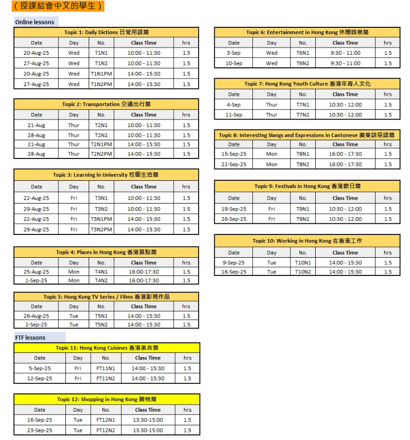 🎓一、校園粵語課全收錄(*除自學課程外,以下所有課程只針對本校學生)