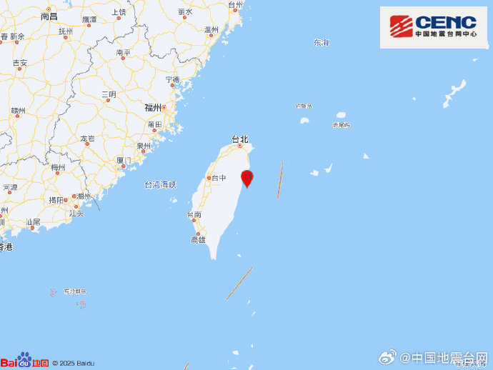 台灣花蓮縣海域發生4.3級地震。(中國地震台網)