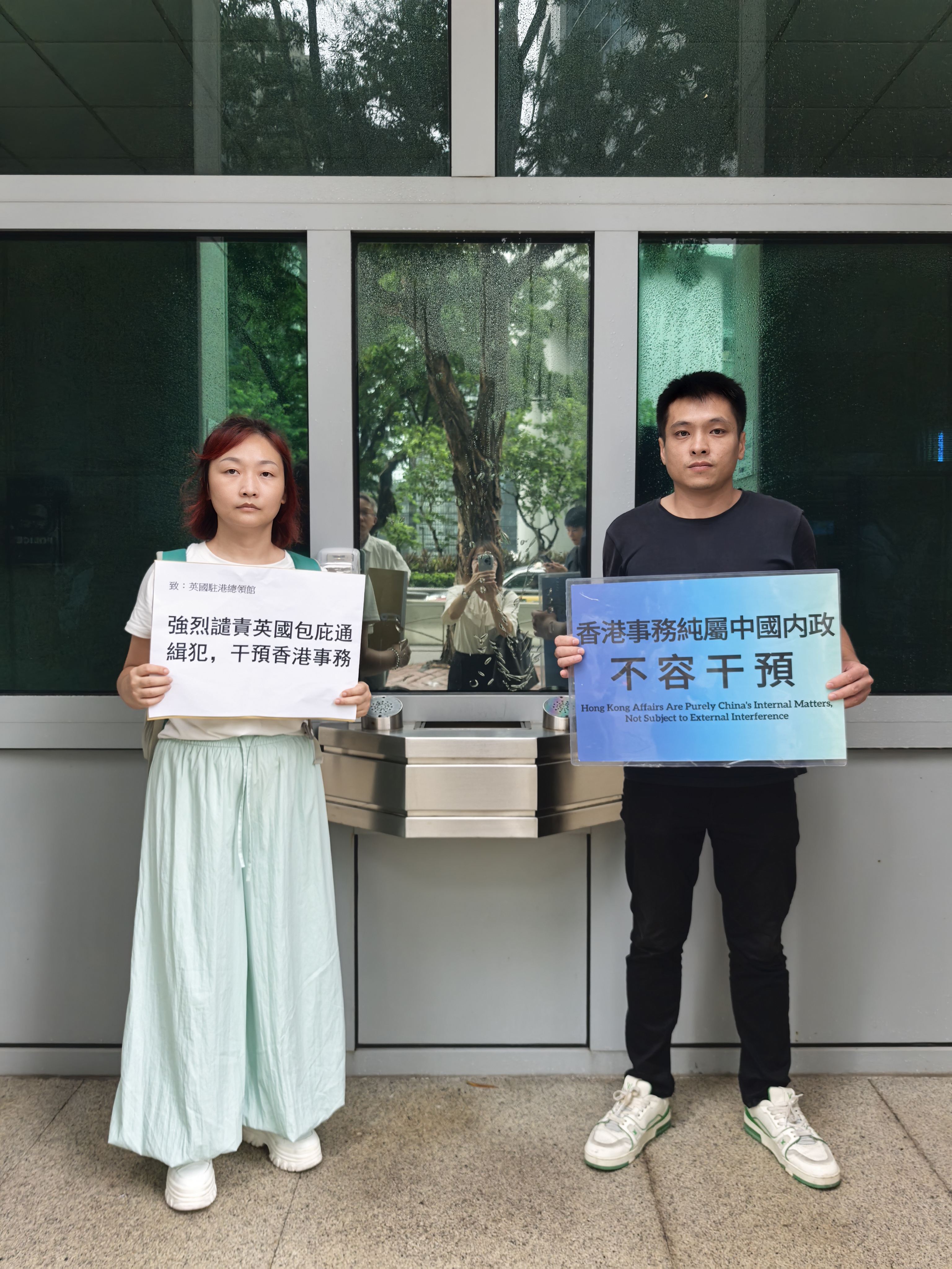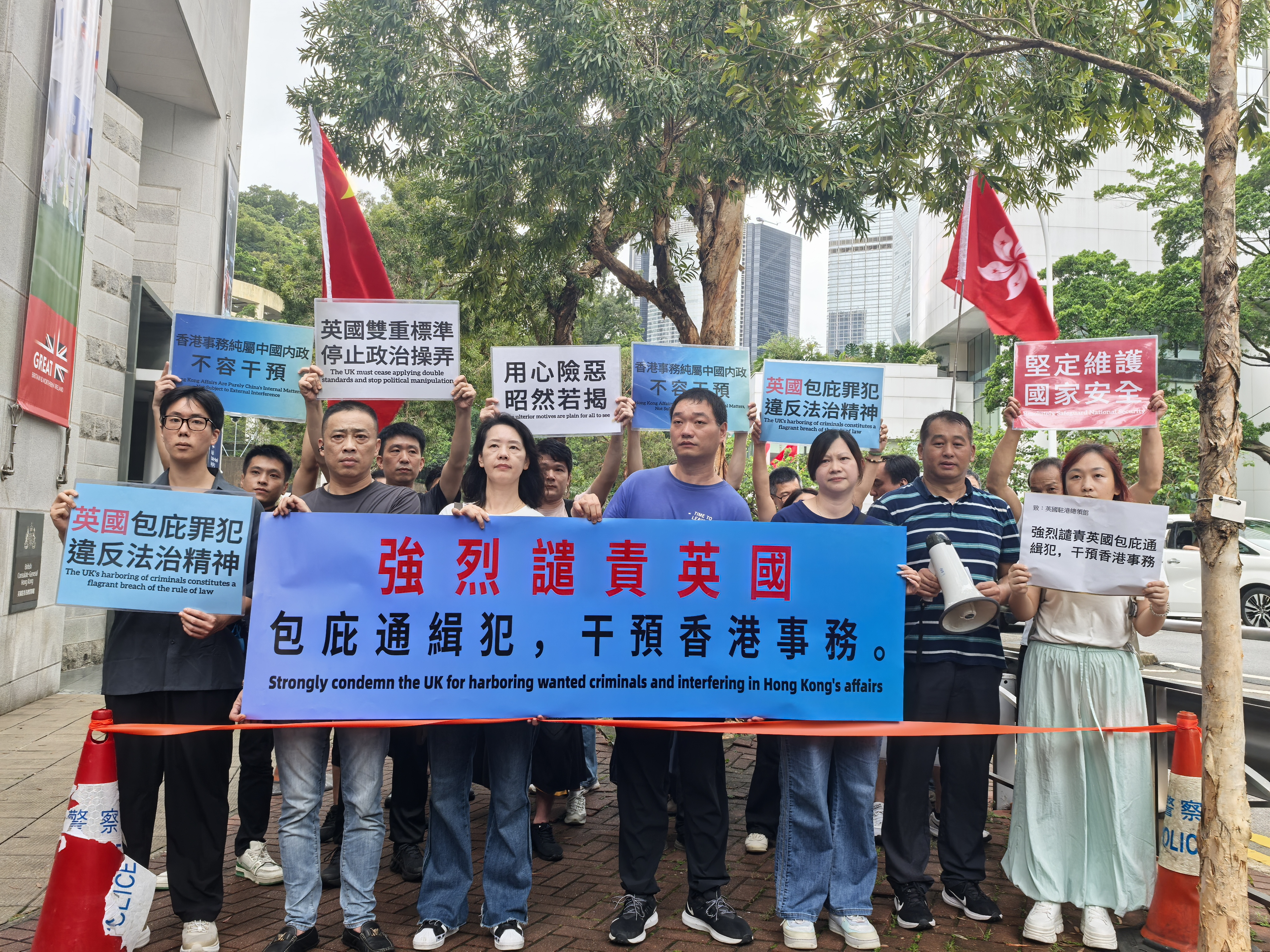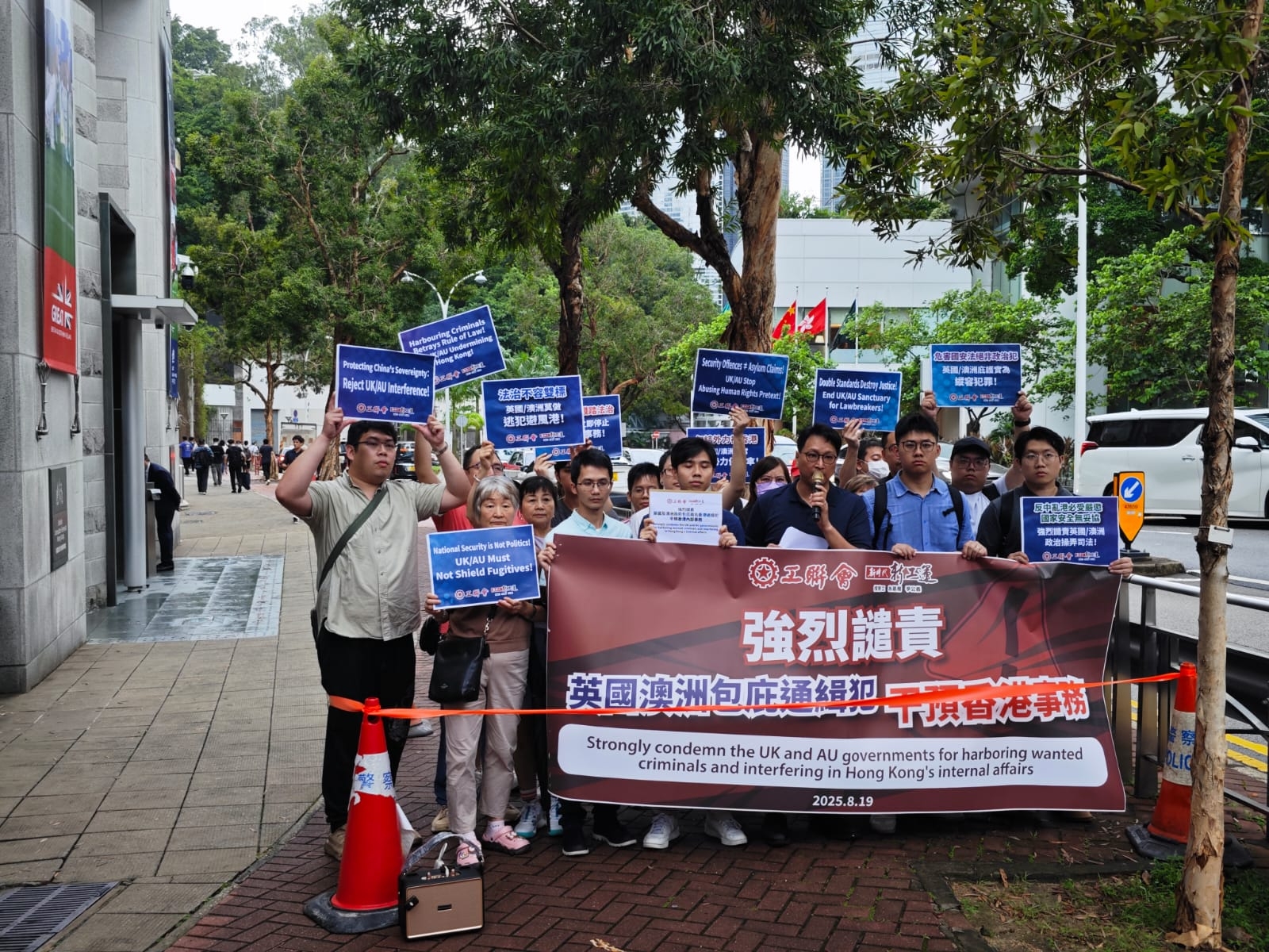【點新聞報道】針對澳大利亞、英國為許智峯、鍾翰林等反中亂港分子提供所謂「庇護」,公然包庇罪犯、干預香港事務,工聯會社會事務委員會(社委)及工會代表今日(19日)到英國駐香港總領事館抗議,強烈譴責英國及澳洲政府包庇香港通緝犯,干預香港事務。