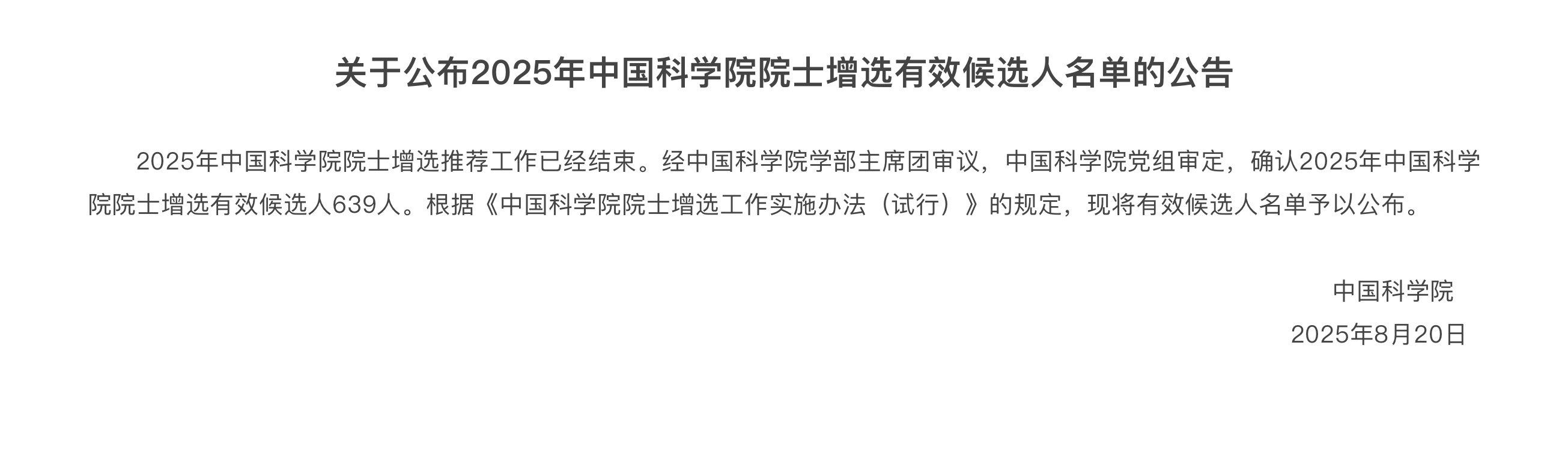院士制度是黨和國家為樹立尊重知識、尊重人才導向,凝聚優秀人才服務國家設立的一項重要制度。院士增選每兩年進行一次,2025年兩院院士增選工作於4月25日啟動,中國科學院院士、中國工程院院士增選名額各不超過100名。昨日(20日)兩院公布入圍院士增選有效人選,此後將進行外部同行專家評選、院士增選大會選舉,選出新增選院士。