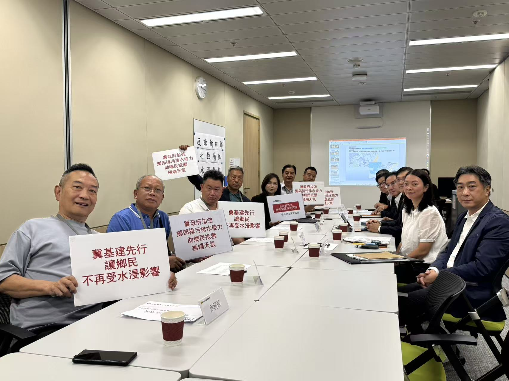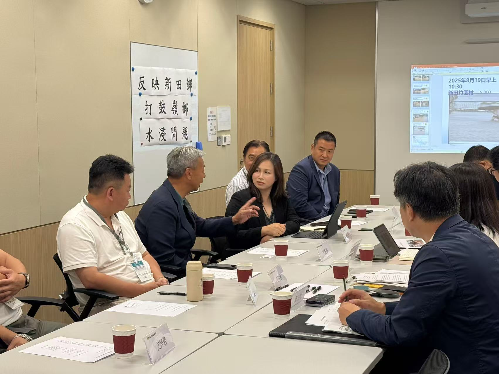 不僅新田鄉,打鼓嶺鄉同樣面臨暴雨及颱風導致的水浸問題,影響村民的日常生活及當區農場、豬場的運作。鑒於極端天氣今年尤為頻繁,陳月明辦事處近日聯合發展局、渠務署及新田鄉事會舉行會議,專門探討解決新界北的短中期水浸問題及居民訴求。