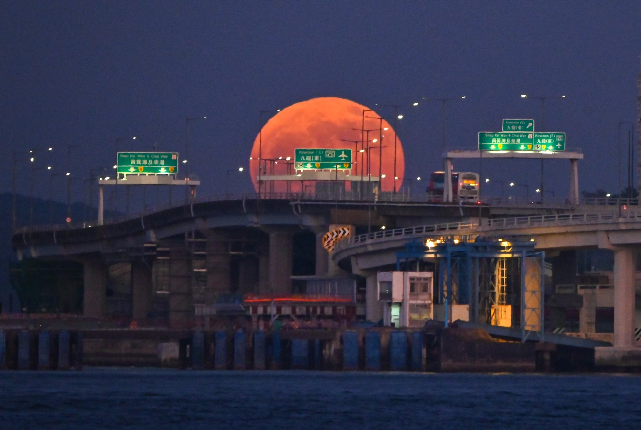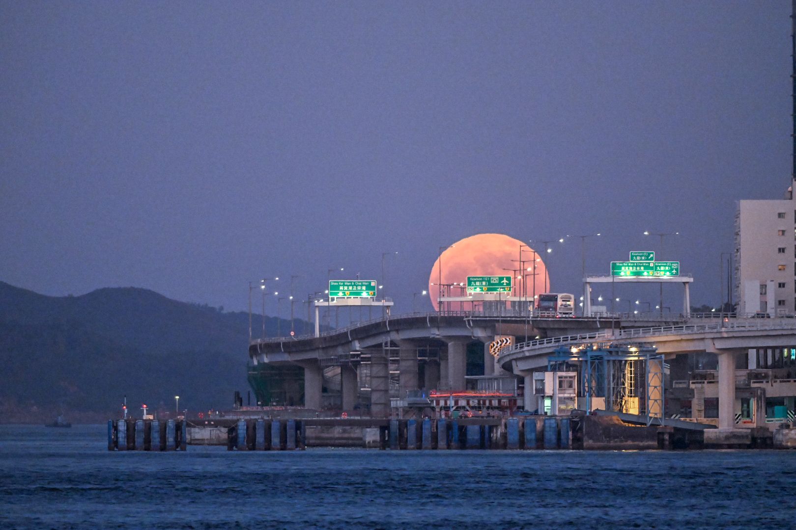【點新聞報道】近日香港夜空出現一幕震撼景象:一輪泛着橙紅光暈的巨型明月低懸天際,彷彿君臨天下,與漸闌的霓虹燈火交織成奇幻畫面。有市民在東區走廊捕捉到誇張的「巨型月亮」懸掛天邊的影像,照片張力十足,引發熱議。