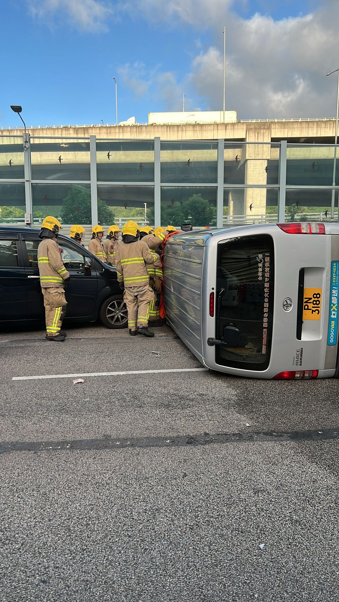 【點新聞報道】粉嶺公路今日(30日)下午有4車相撞,其中一輛輕型貨車翻側,車上5人受輕傷。