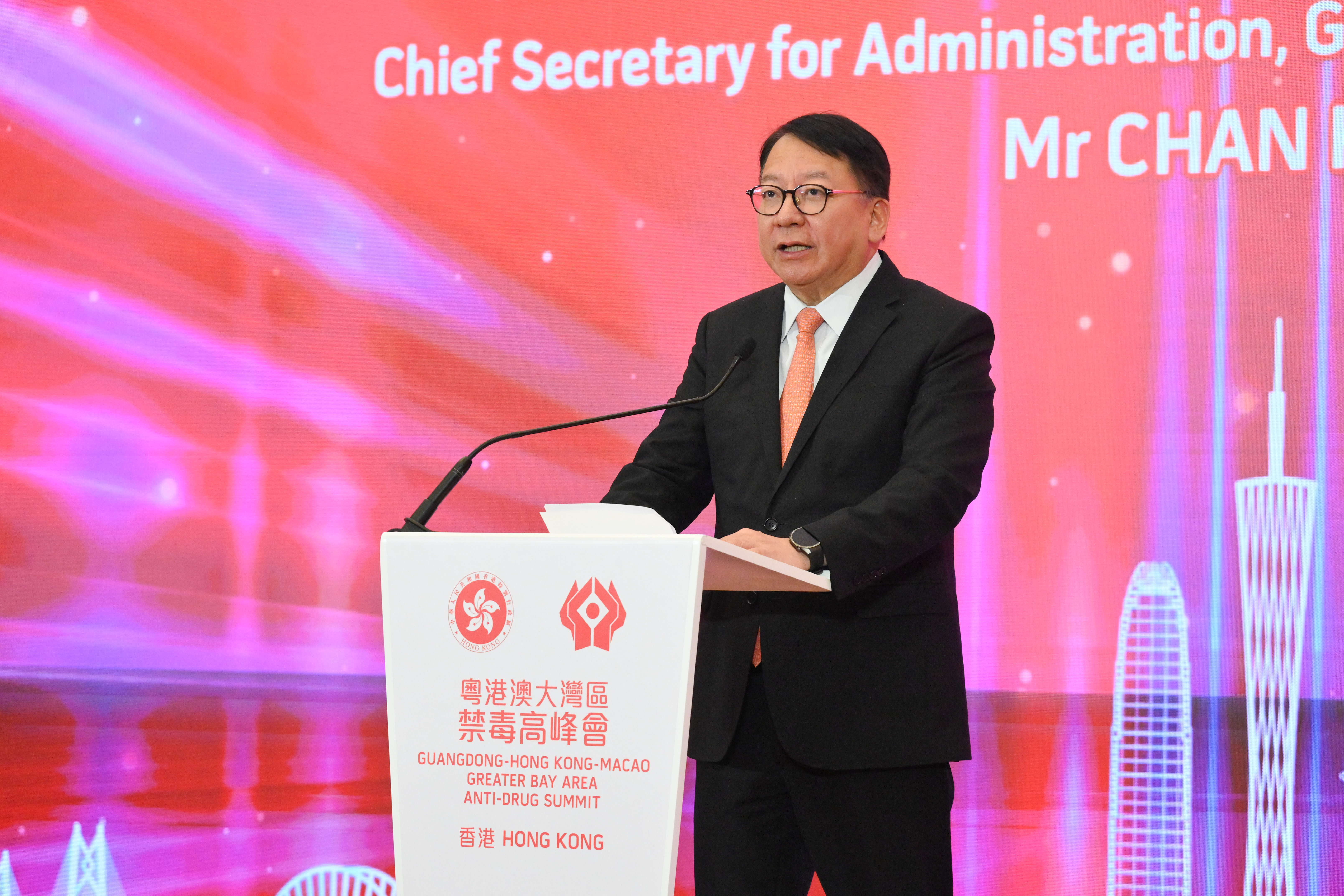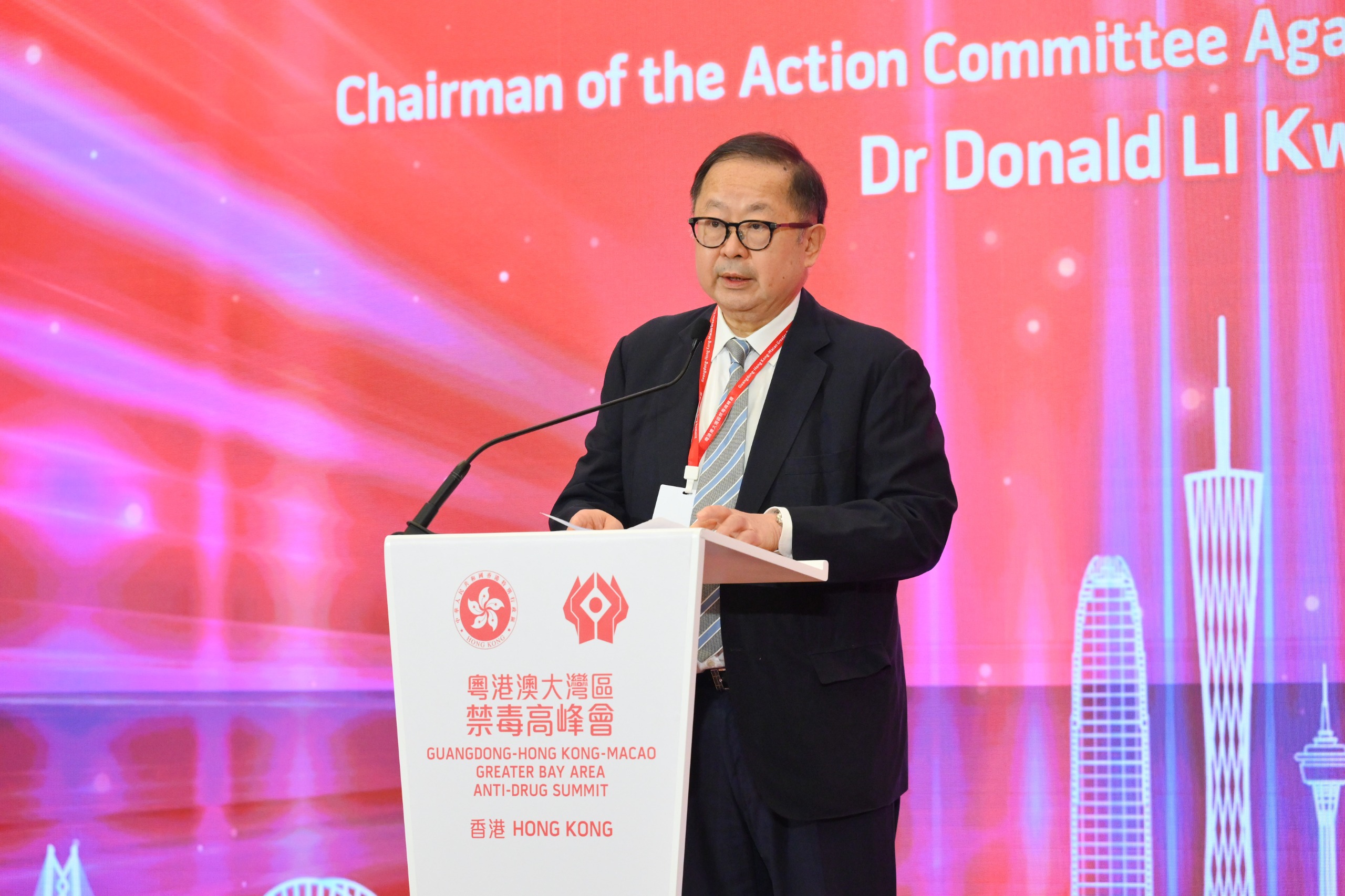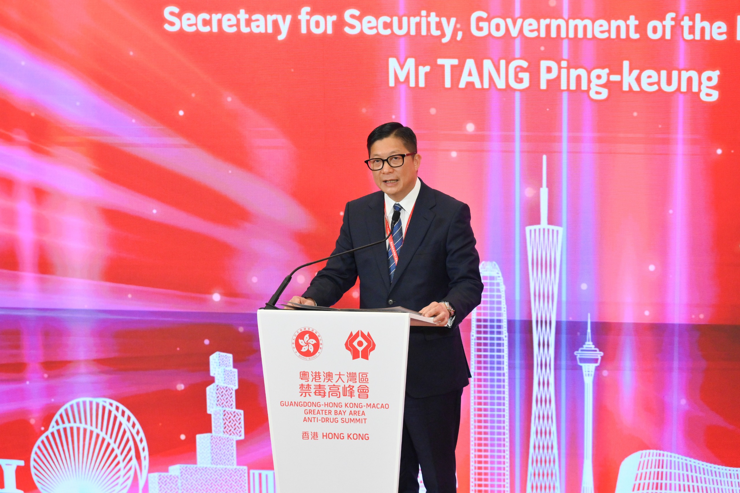 政務司司長陳國基作開場致辭時表示,今日的高峰會是香港禁毒史上的重要里程碑。因今年是《粵港澳大灣區發展規劃綱要》公布後,第一個連結粵港澳三地的禁毒高峰會,別具意義。