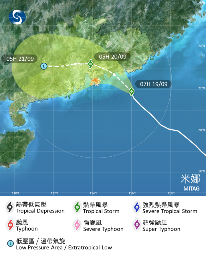 過去數小時,熱帶風暴「米娜」穩定地向西北方向移動。按照現時預測路徑,米娜會在今日黃昏前後登陸廣東東部沿岸,同時亦受東北季候風影響而轉向偏西方向移動,移近珠江口一帶,在本港以北約100公里範圍掠過。天文台會視乎「米娜」屆時的強度變化、其烈風區與本港的距離及本地風力變化,評估是否需要改發更高熱帶氣旋警告信號。