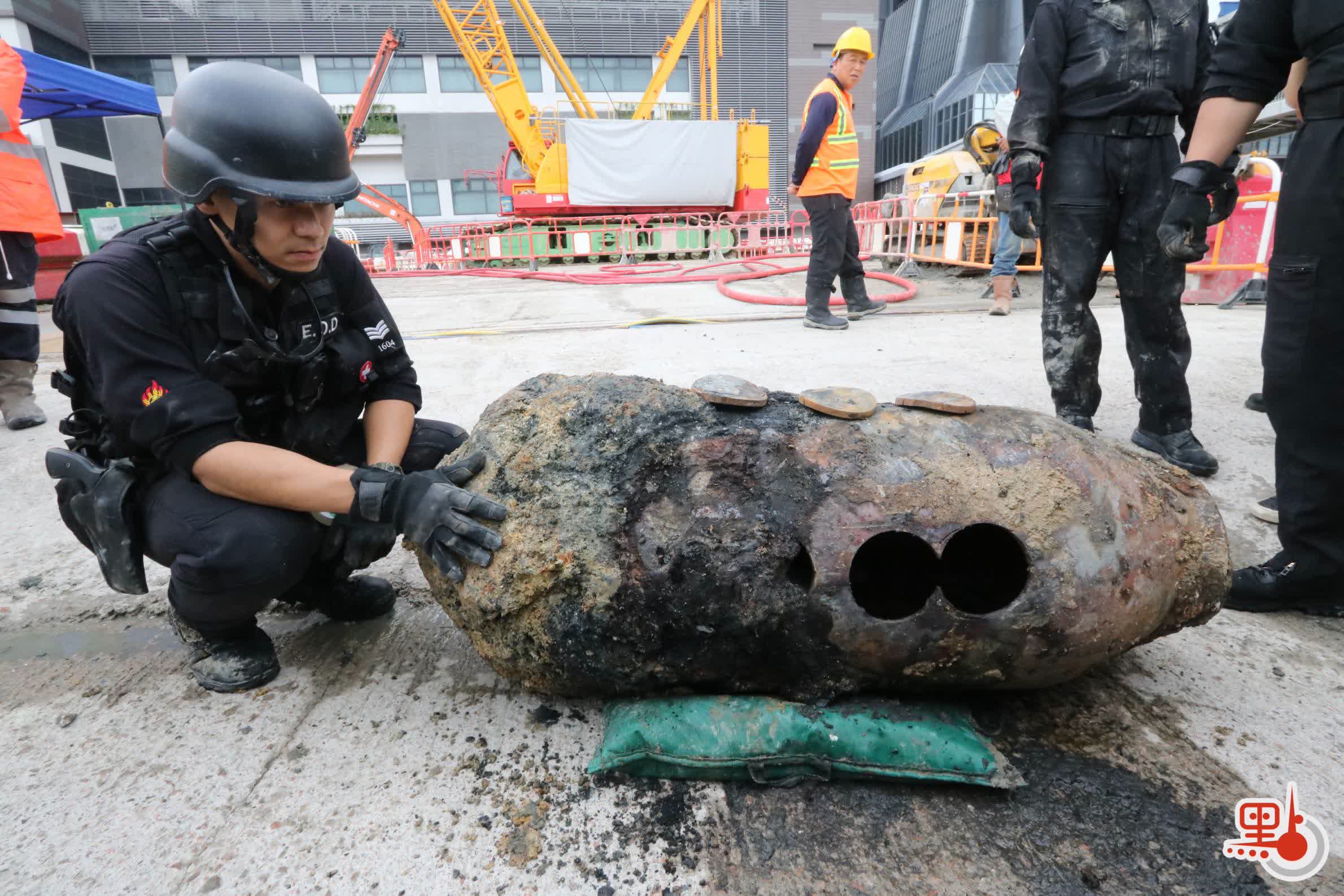 (有片)鰂魚涌戰時炸彈|警方:炸彈長1.5米重1000磅 具極高性能及危險性