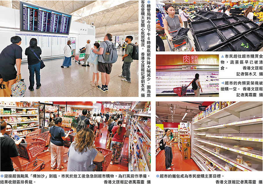 超強颱風「樺加沙」撲港,預計航空交通將大受影響。香港機場管理局昨日聯同國泰航空等多間本地航空公司交代颱風吹襲期間的安排。機管局強調颱風吹襲期間,香港國際機場不會關閉,維持開放,但今日(23日)傍晚後航班升降量大減,其間會安排逾千人員留守為旅客提供服務,並會增設臨時休息區予乘客和員工。其中,國泰航空今日下午6時開始暫停所有航班運作,預計直至周四(25日)日間才能逐漸恢復升降,其間料會取消逾五百班航班,香港快運則預計有逾百個航班取消。多間航空公司則宣布豁免受颱風影響的旅客之更改機票手續費。